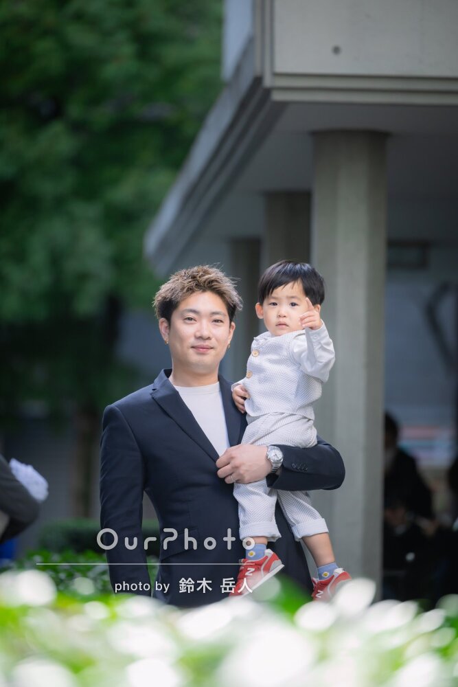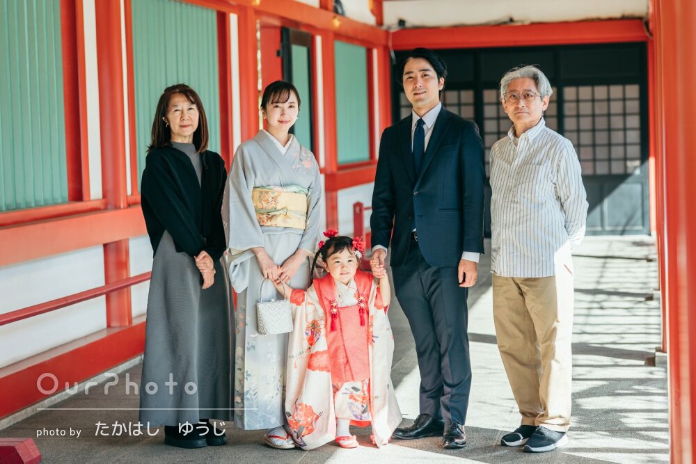 当日は待ち合わせの段階から状況に合わせて臨機応変に対応してくださり、人見知りの娘もすぐに打ち解け、自然な笑顔をたくさん引き出していただきました。祖父母にも温かくお声がけいただき、とても喜んでおりました。