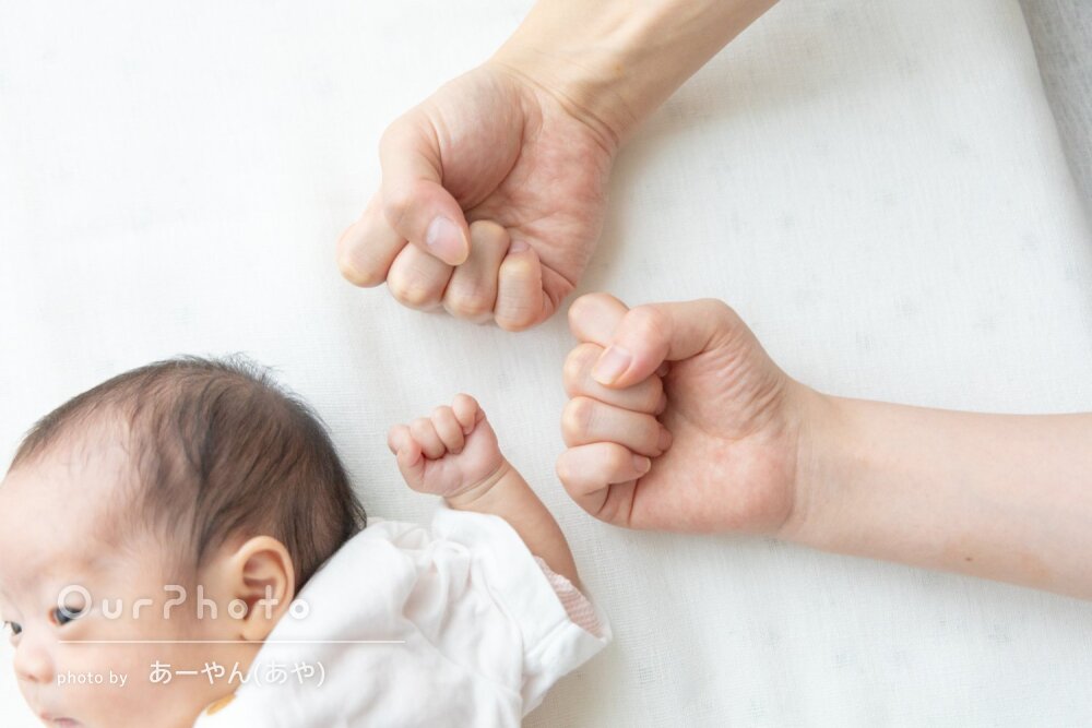途中泣き出してしまい無事撮影を終えられるか不安でしたが、あやしていただき、また撮影もスピーディーに進めていただいたおかげで、無事最後まで撮影することができました。