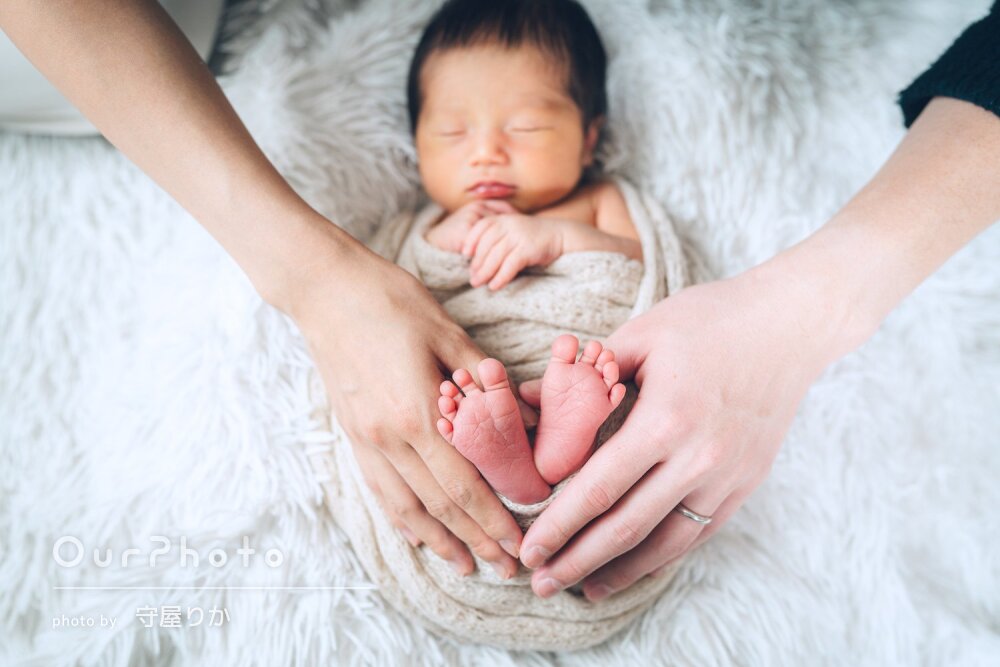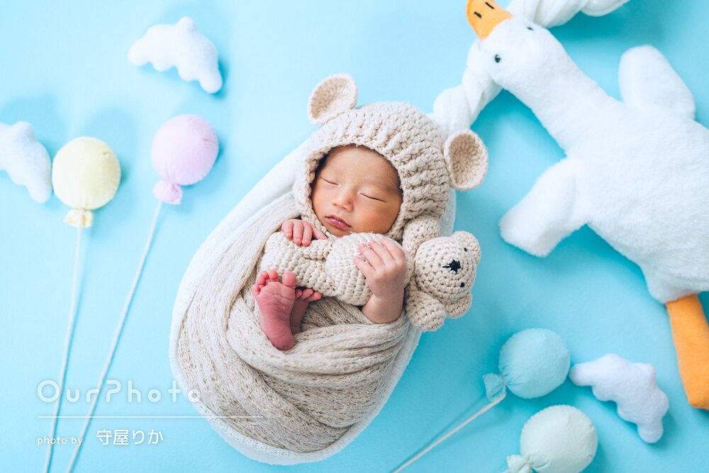ニューボーンフォトについて、全く知識のない私でしたが、一緒に考えながら撮ってくださるので、安心してお任せすることができました。