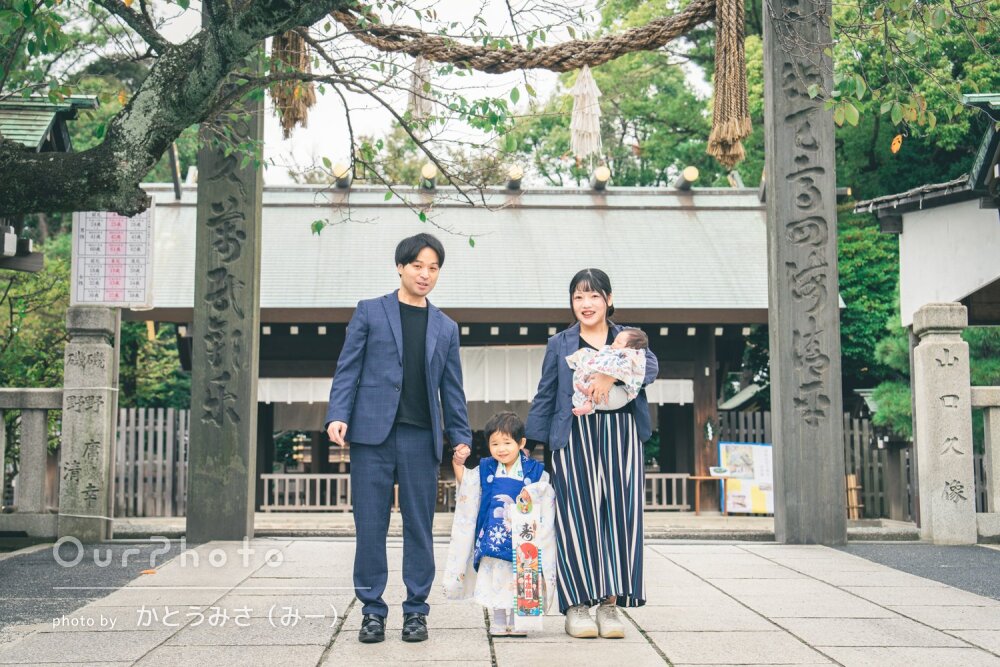 神社でのロケーションフォトで、当日は急にお天気が崩れてしまいましたが、多田さんから的確なご指示を頂き、スムーズに撮影を終えることが出来ました!イヤイヤ期真っ只中の長男も可愛く撮って頂き、ありがとうございました!