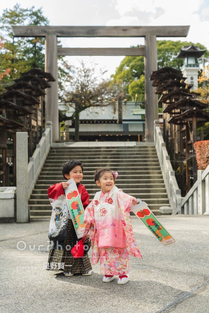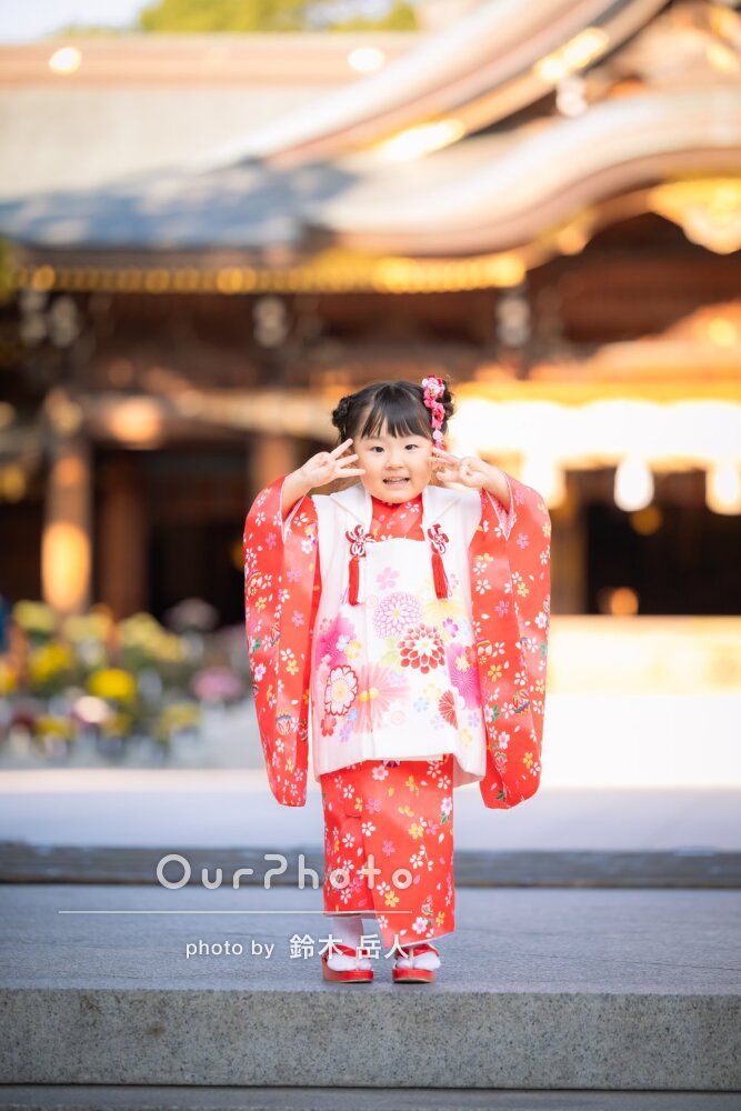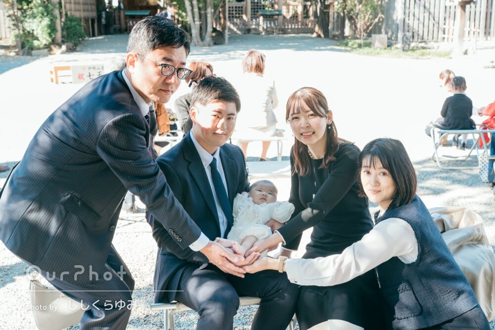 孫の七五三のお祝いの写真をお願いしました。七五三の時期で混むと思い、8月初めに予約し、11月まで長きにわたりチャットでの対応をしていただきました。当日は、御祈祷後からの撮影の予約をお願いしていましたが、御祈祷が、予定より15分ほど早く終わってしまいましたが、早めに来ていただいていて、すぐに撮影に入ることができました。孫や私たちのペースにあわしてくれ、出来上がりの写真は、孫をはじめ、皆が笑顔で素敵な写真に出来上がりました。良い思い出を残すことができました。ありがとうございました。