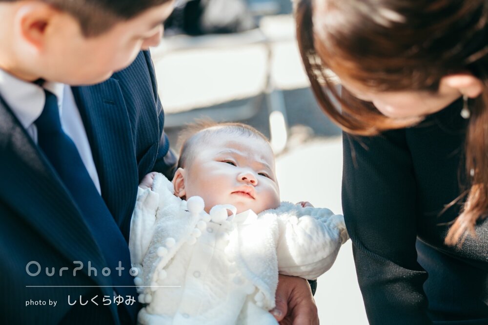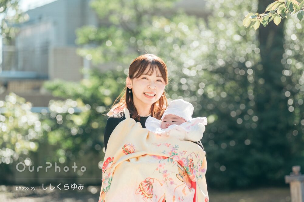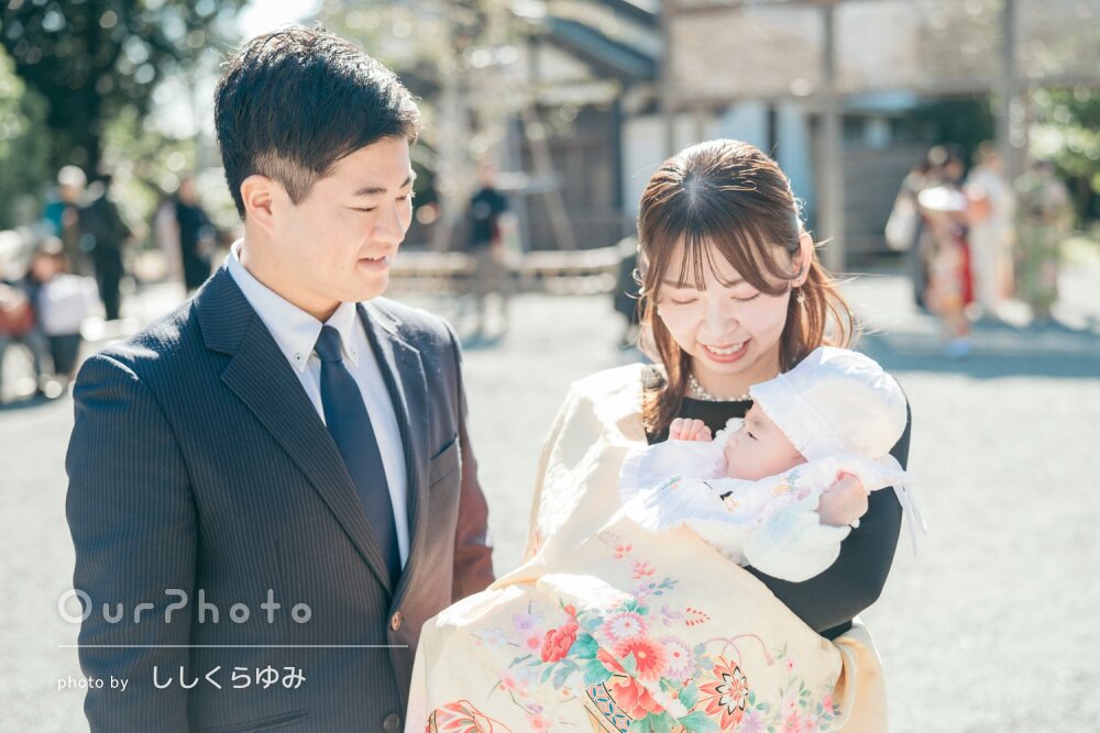 お宮参りに引き続きお願いしました!鈴木さんのお顔を覚えていたお姉ちゃん2人は、見つけるとすぐ駆け寄っていました!鈴木さんの人柄や声掛けのおかげで撮影もスムーズで、今回も素敵なお写真をたくさん撮っていただけました!プリントしてお部屋に飾るのが今から楽しみです!