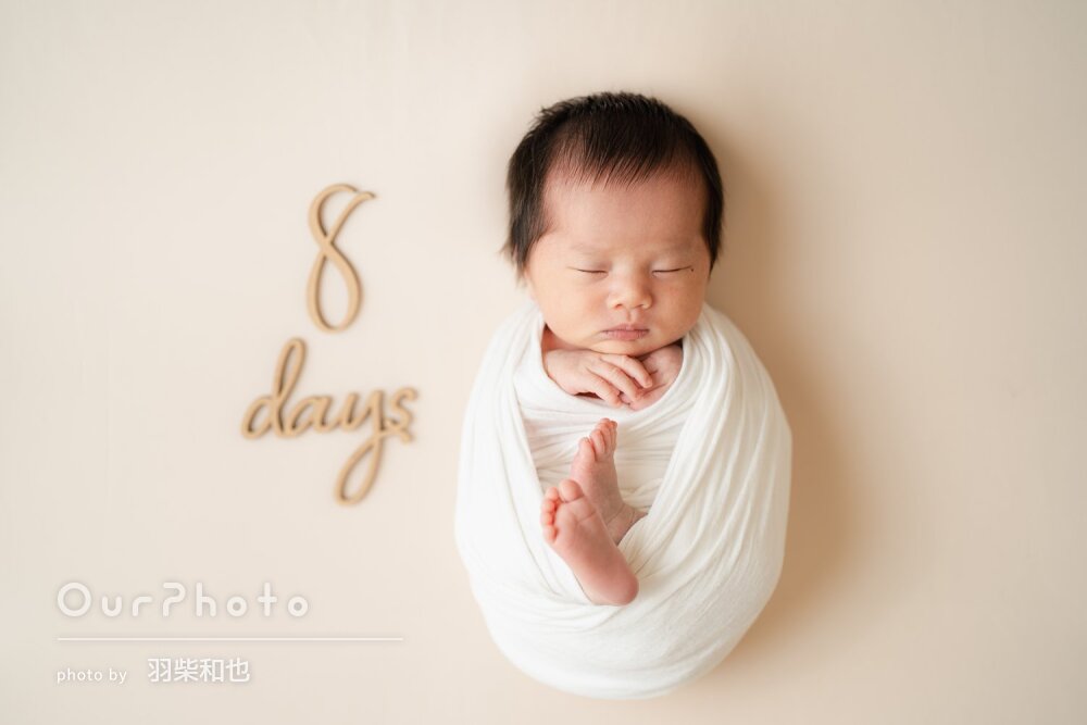 産後で疲れていて、ニューボーンフォトを撮ろうか迷っていたのですが、本当に撮って良かったです!母乳のみのためなかなか寝付けなかったり、バタバタして足が出ちゃったりとハプニングもありましたが、子どものペースに合わせてゆっくりと撮影してくださいました。仕上がりは子どものイメージに合ったとても可愛らしい写真で大満足です!そして、わが子との初めての家族写真もとてもいい記念になりました。産院の疲れも吹き飛ぶとても楽しい撮影となり、本当に撮っていただいて良かったなと思っております。
