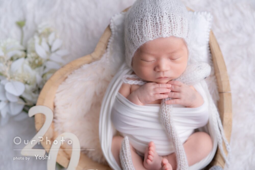 生後19日と少し遅めの撮影でしたが、とてもスムーズに撮ってもらえて大満足です♪