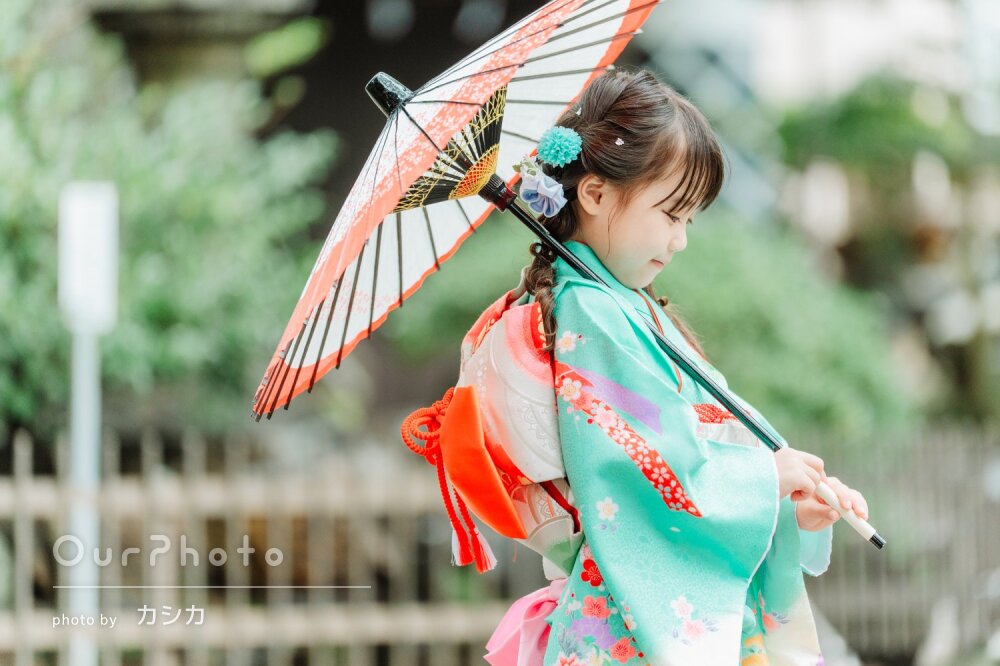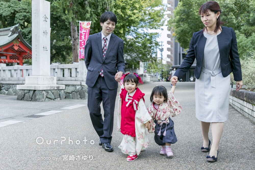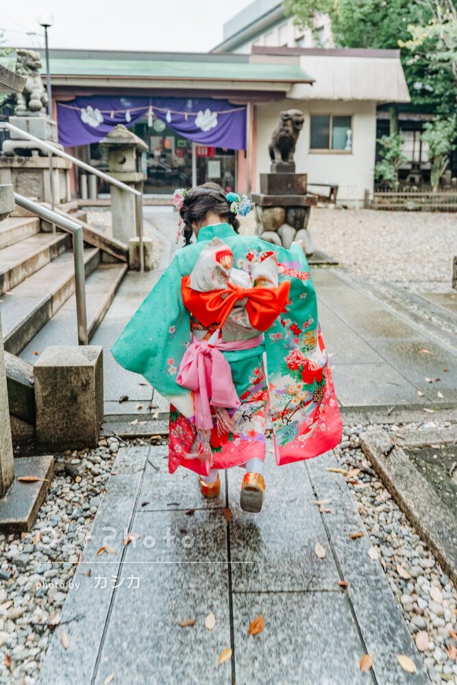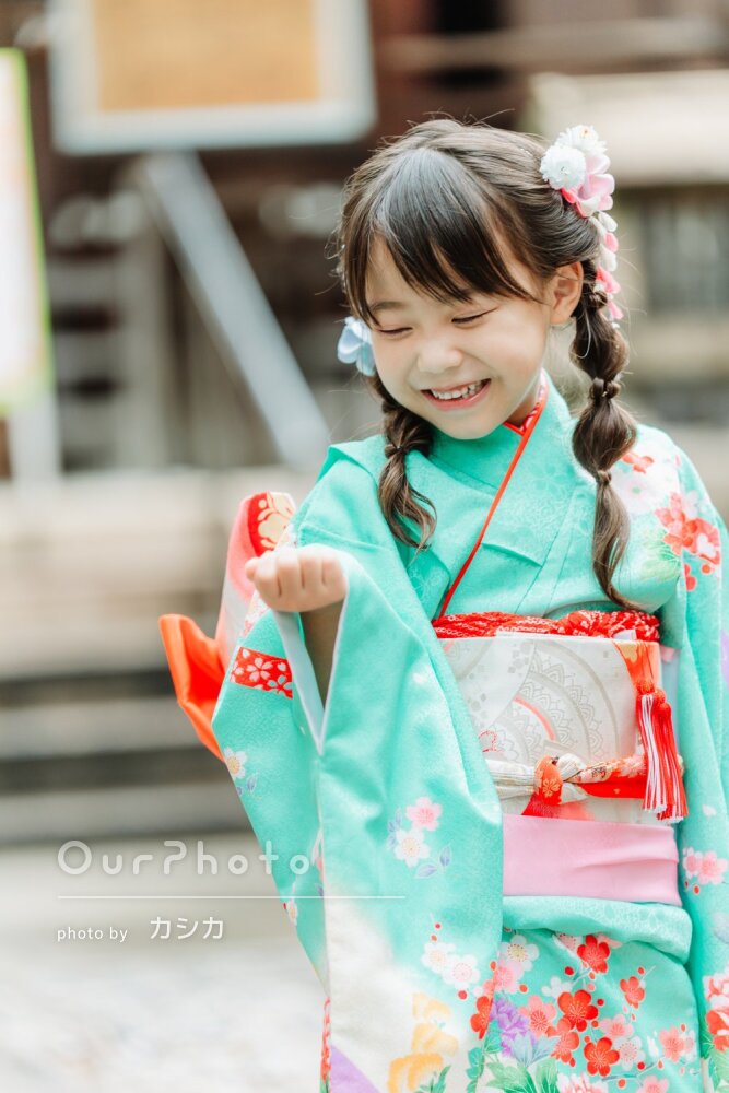 以前撮っていただいた娘の写真を見比べ、嬉しそうな笑顔は一緒なのに、身体は成長し、お宮参りの着せられていた着物から自分で選んだ着物を着て堂々と歩く姿は本当に大きくなったなぁと感慨深く思っています。