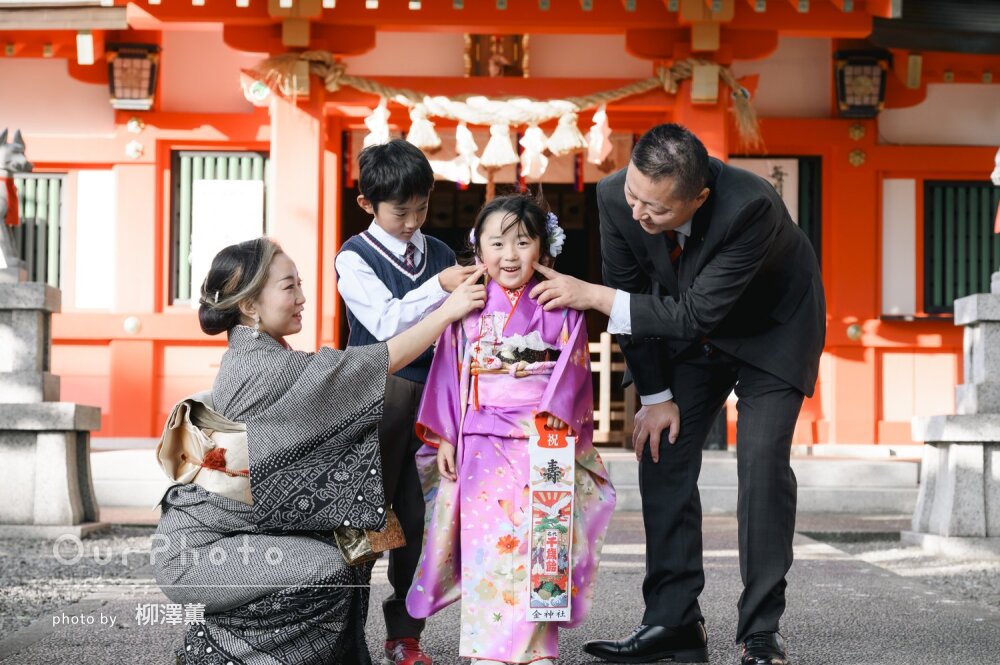 以前撮っていただいた娘の写真を見比べ、嬉しそうな笑顔は一緒なのに、身体は成長し、お宮参りの着せられていた着物から自分で選んだ着物を着て堂々と歩く姿は本当に大きくなったなぁと感慨深く思っています。
