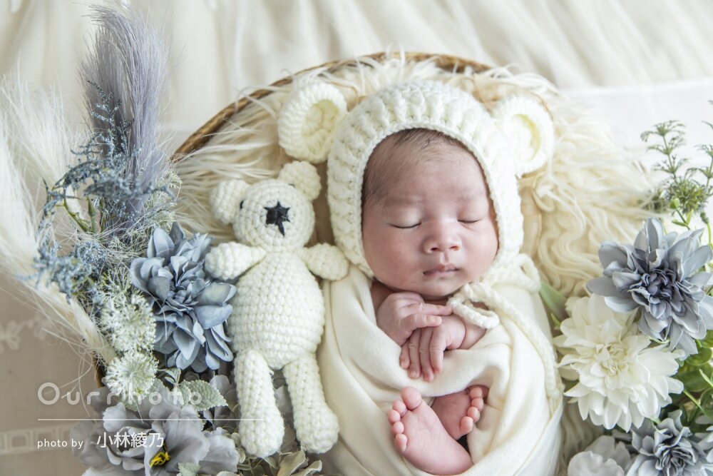 素敵な思い出となりました!迅速かつスムーズな撮影と丁寧なご対応をしていただき、まだ新生児なので時間もちょうど良く、赤ちゃんにもストレスない形で撮影していただけてとてもよかったです。完成品もとってもかわいく満足です!ありがとうございました!