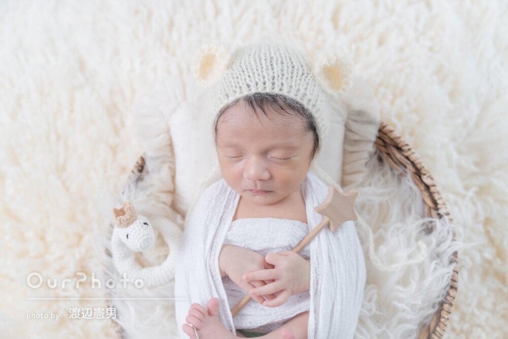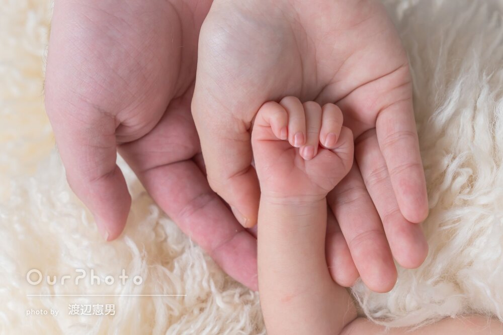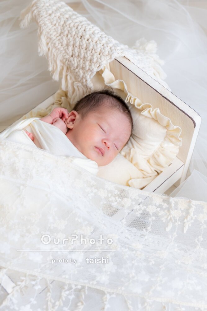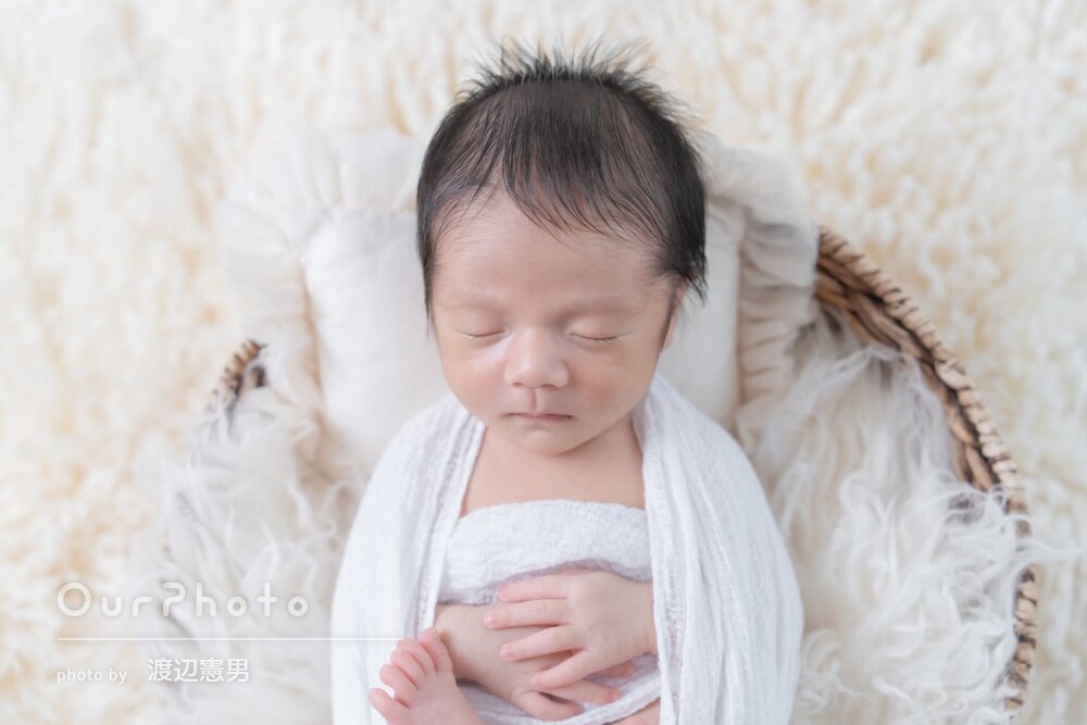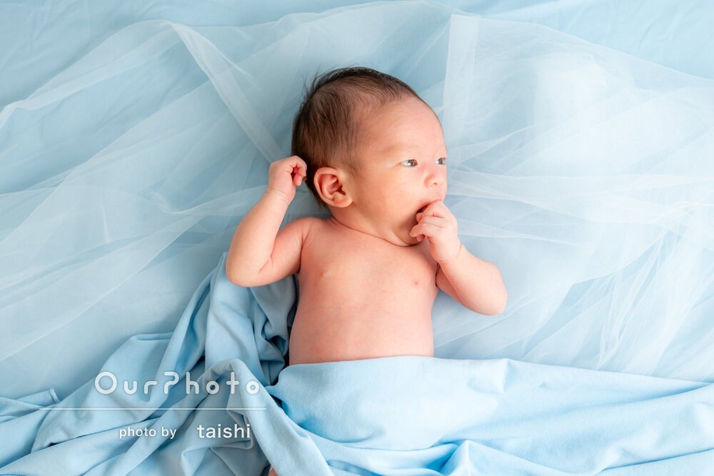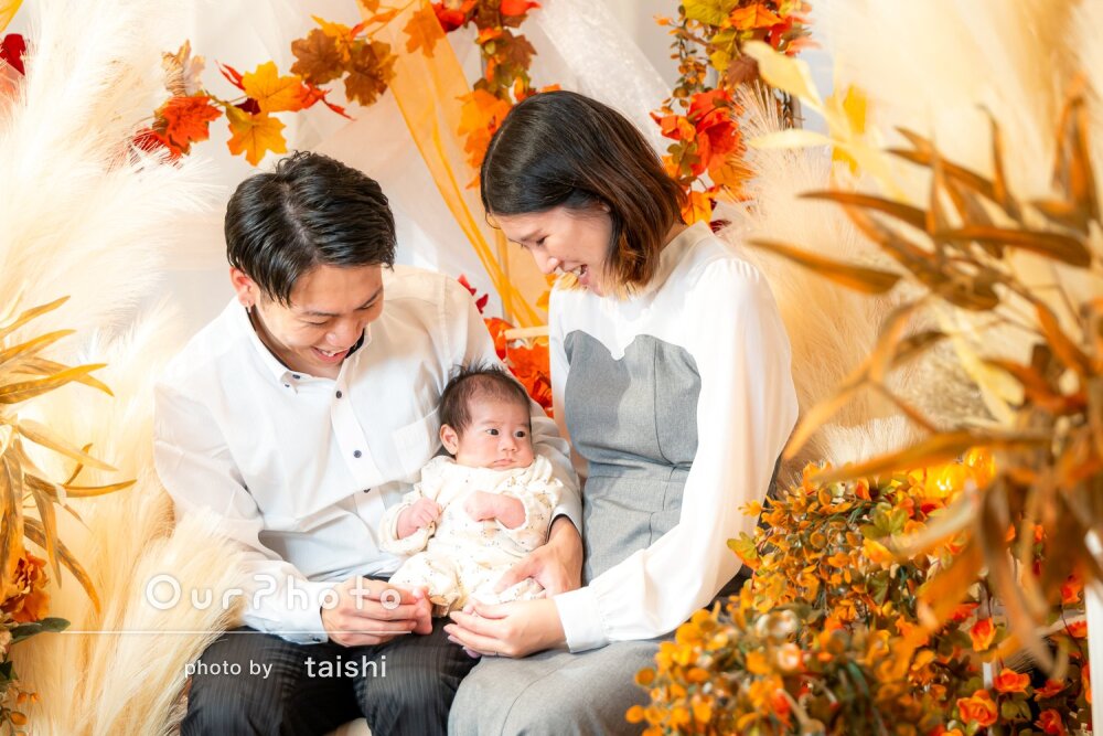 こういった自宅での撮影が初めてで勝手が分からず心配していましたが、事前のやりとりでも質問に丁寧にお答えいただき、小物の準備やおくるみを巻くのも当日手際よくやっていただき安心しました。