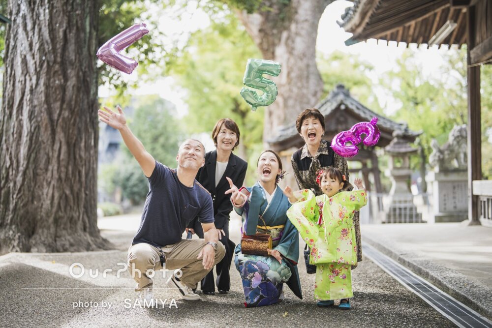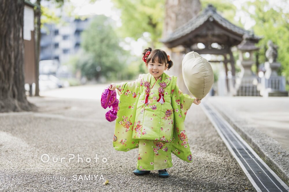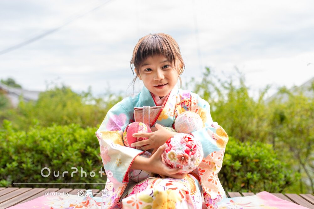 娘の笑顔がとても素敵でお写真を見ると顔がホッコリしてしまいます!鞠や傘、お面を貸し出ししていただいてとても喜んでいたのでお写真から楽しさが伝わってきます。