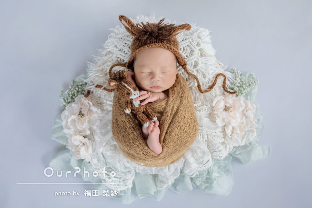 完成した写真とても素敵で、ニューボーンフォトをお願いして良かったなと思いました!ありがとうございました。