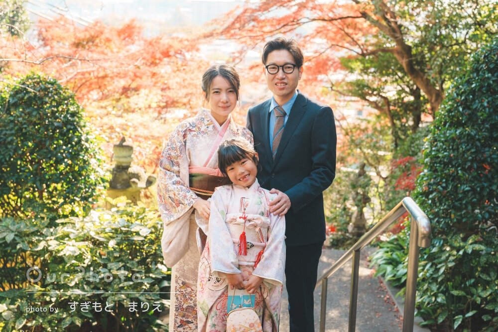 3歳娘の七五三の写真をお願いしました。当日雨予報だった為、前日に延期をお願いしましたが、快く引き受けてくださいました。撮影当日はやっと天気にも恵まれ、紅葉も綺麗で、素敵に撮って頂きました。緊張気味の娘でしたがjuna.さんの声掛けで段々と笑顔になり、楽しい撮影となりました。あっという間の1時間でした。ありがとうございました。
