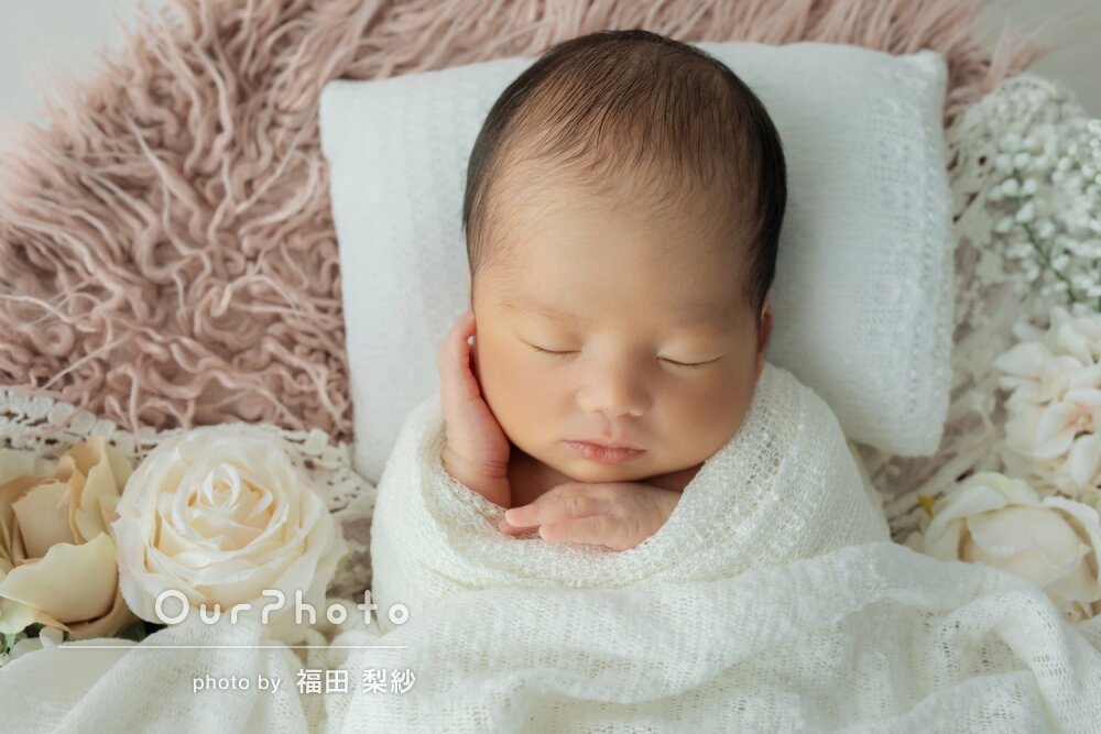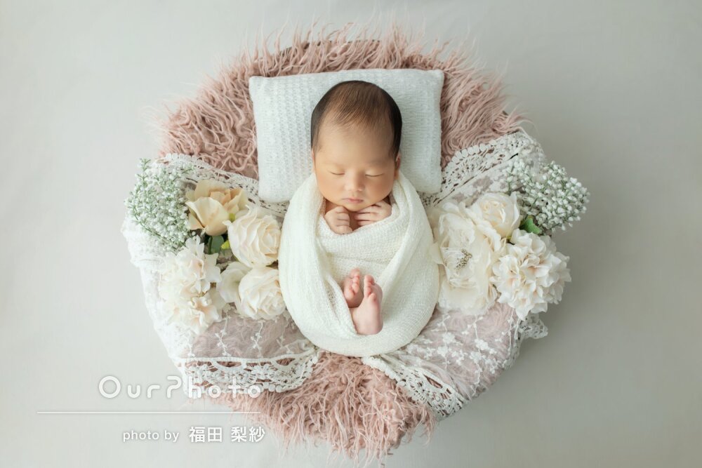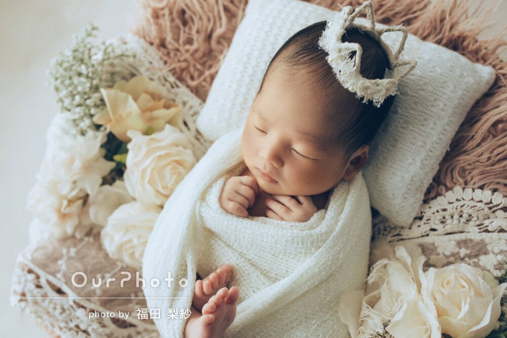 小物もたくさん選ばせてくれて納得できるニューボーンフォトとなりました!