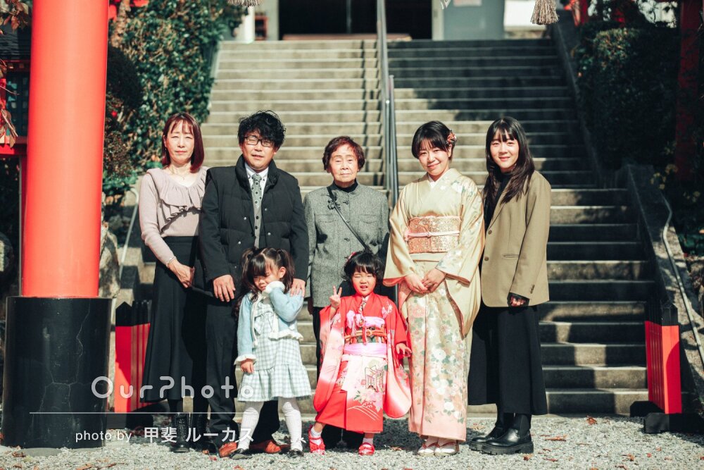 スタジオ以外でプロの方に写真を撮っていただくのは初めてで家族で緊張していました。