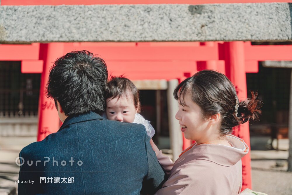 神社でのお宮参りの撮影をお願いしましたが、笑顔で子どもをあやしてくださったり、産着も着せてくださったり、あたたかいお心遣いがとても嬉しかったです。納品もすぐにしていただき、家族も写真を見て喜んでくれました。門井さんのおかげで素敵な思い出ができました。ありがとうございました。