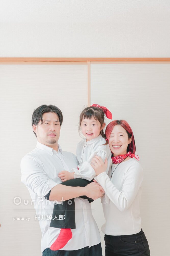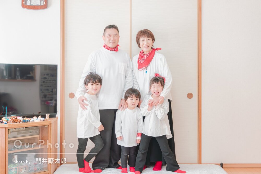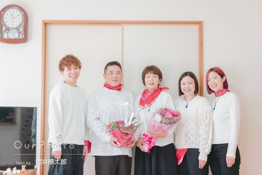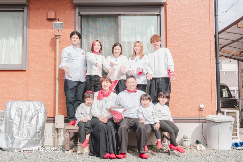 当日は早くから撮影地に訪れて下見してくださり、撮影中も色んなシチュエーションでの撮影を提案して頂きました。最初は撮影に緊張しましたが、自然と笑っている写真や家族と談笑している何気ないシーンも撮っていただき素敵な写真ばかりでした。