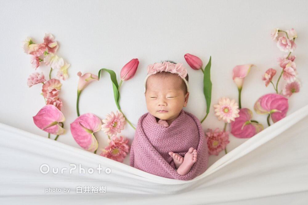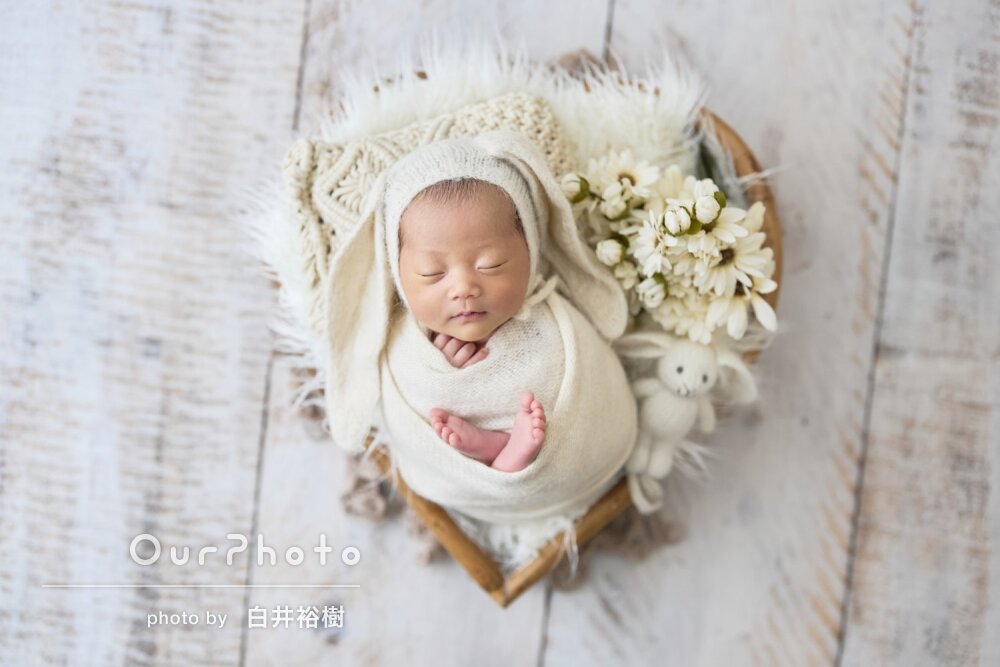 友人に紹介してもらいニューボーンフォトを撮っていただきました。