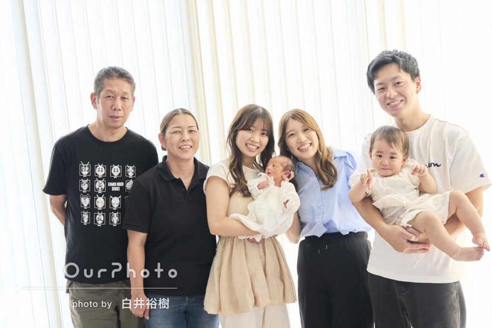 赤ちゃんや上の子の機嫌で難しい場面もありましたが、できるだけ希望に沿った写真を撮れるように協力して頂けてとても満足です!家族写真もたくさん撮って頂き、とても素敵な写真ばかりで嬉しかったです!ありがとうございました!