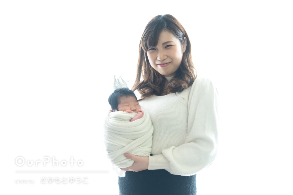 赤ちゃんの扱いが本当に慣れておられて、すぐに寝かしつけたり落ち着かせたりしていただいて、撮影もスムーズに進めていただくことができました。