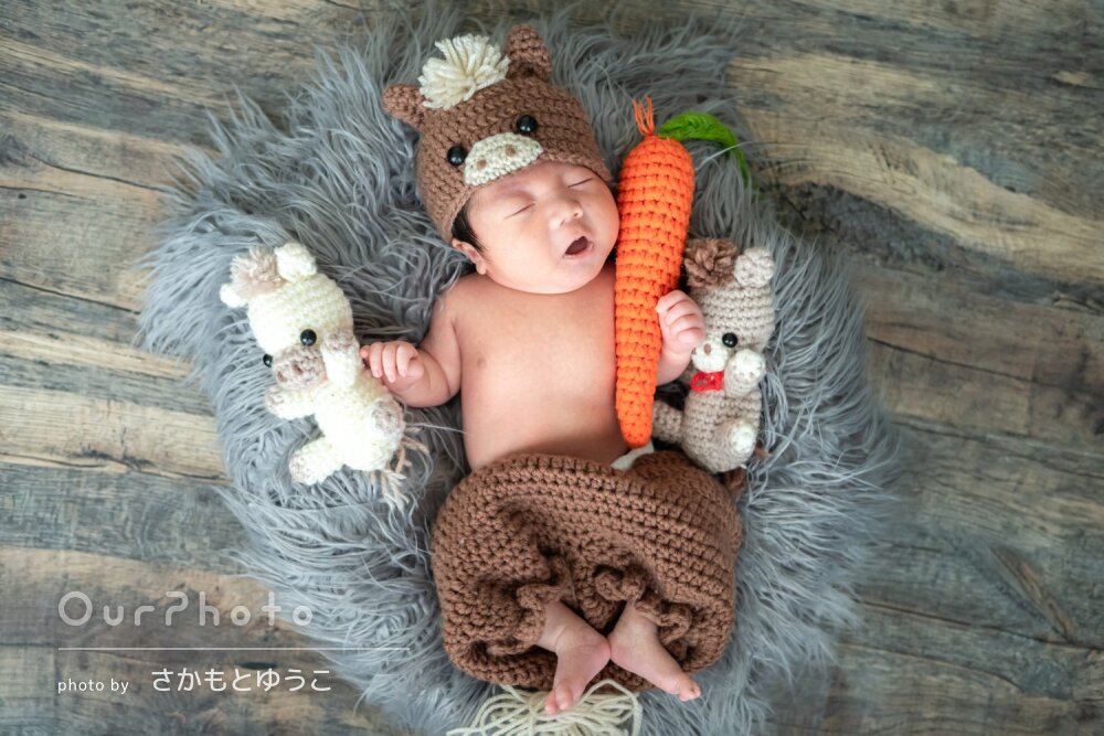 初めてのニューボンフォト撮影でしたが、手際が良く、時間の許す限りたくさんのパターンを撮影していただき嬉しかったです♪
