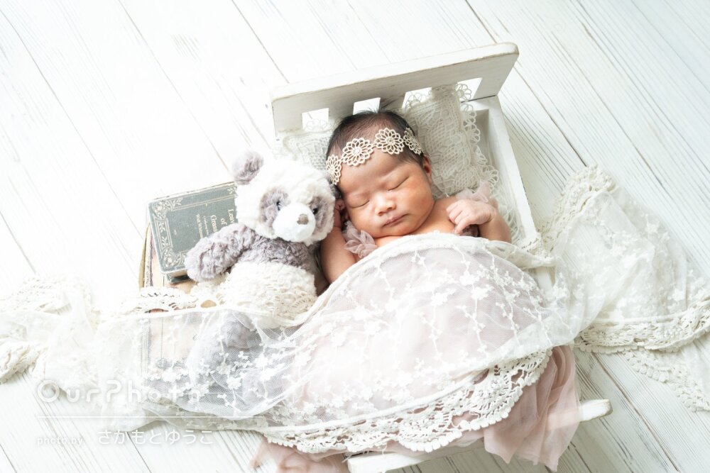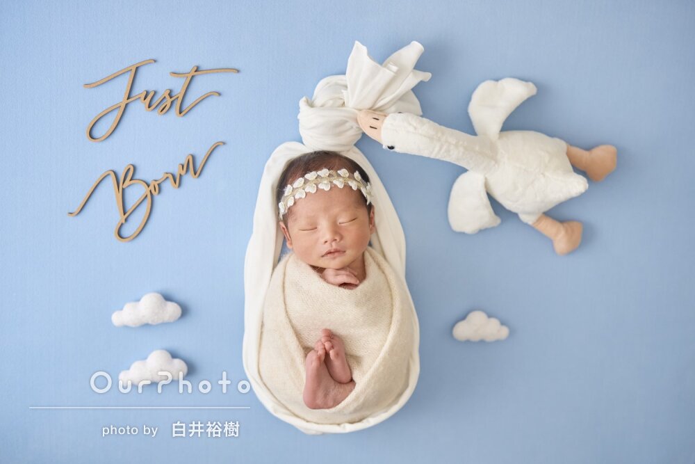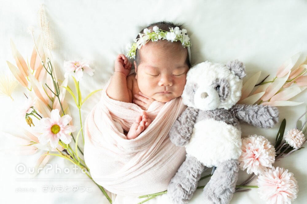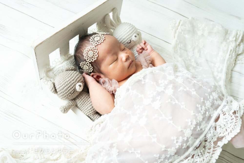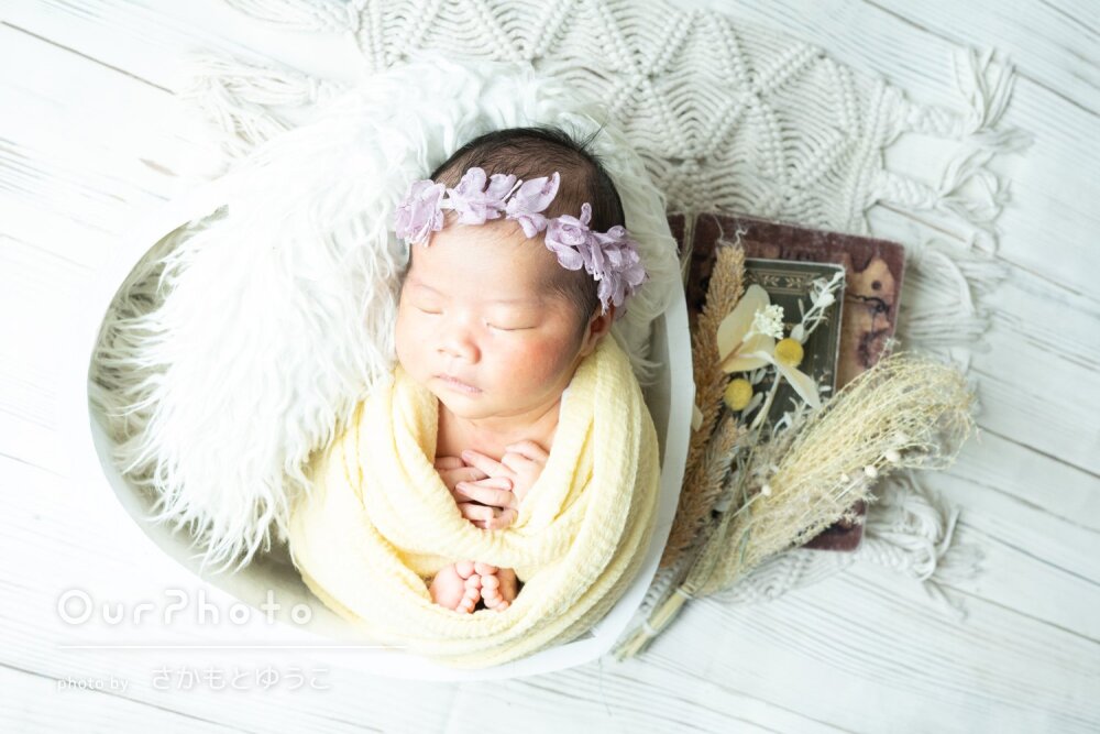 おくるみの色や床の明るさ、ヘア飾りなどを当日に選ぶ時間もとても楽しく、撮影前からワクワクした気持ちで過ごせました。