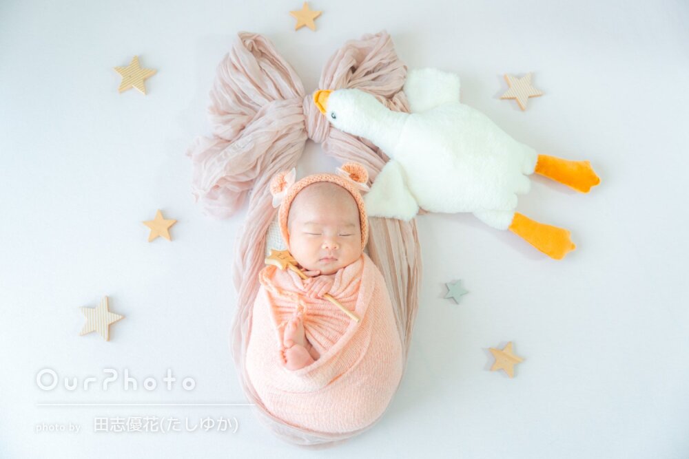 衣装や小物も厳選するのが難しい程可愛いものがいっぱいで、おくるみの色も複数選ばせて頂けるのもすごく良かったです🙂↕️🤍