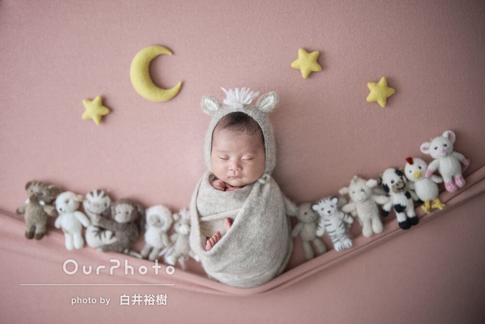 どのパターンもとっても可愛くて、選ぶのにすごく悩むほど素敵な世界観ばかりでした。撮影中もこまめに除菌をしてくださり、赤ちゃんへの配慮が行き届いていて安心してお任せできました。