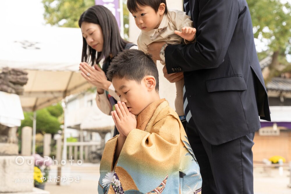 七五三の撮影でお世話になりました。神社の予約時間を勘違いしていたことが直前に分かりご迷惑をおかけしましたが、先に境内での撮影を済ませてその後に祈祷の撮影と機転を効かせて頂きありがとうございました。