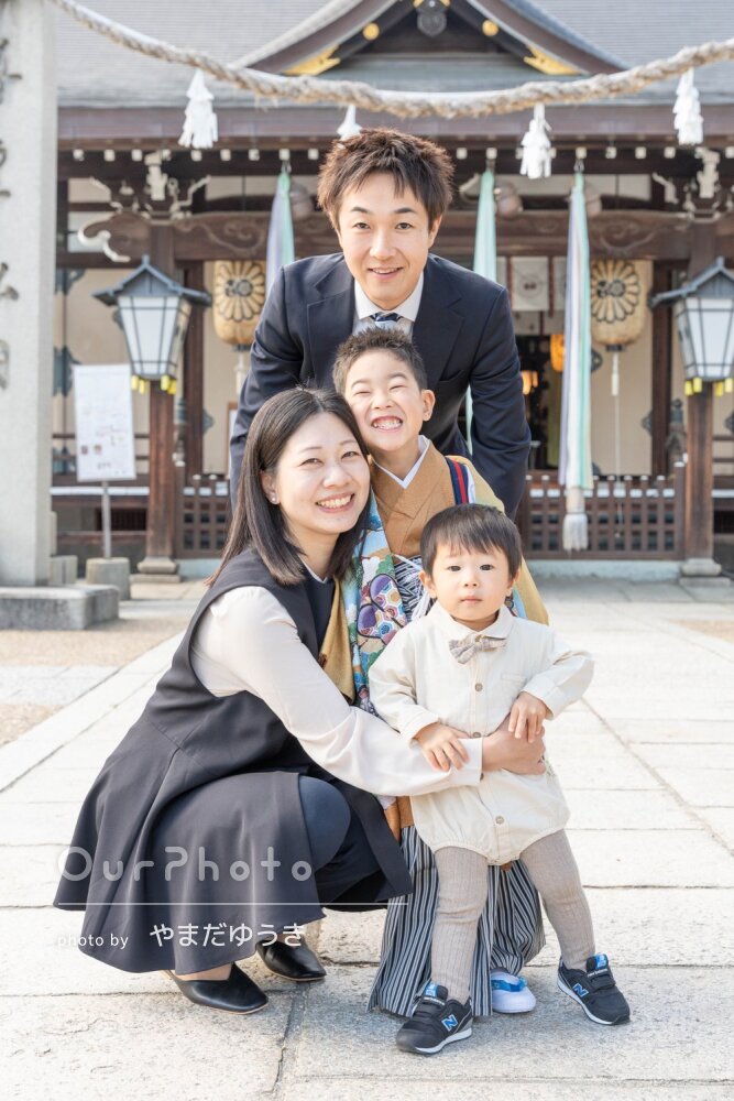 七五三の家族写真の撮影依頼をしました。とても柔らかい雰囲気の方で、息子も人見知りせずに、ニコニコの写真をたくさん撮ってもらえました。家族での楽しい時間を写真に残していただけて嬉しいです。ありがとうございました。
