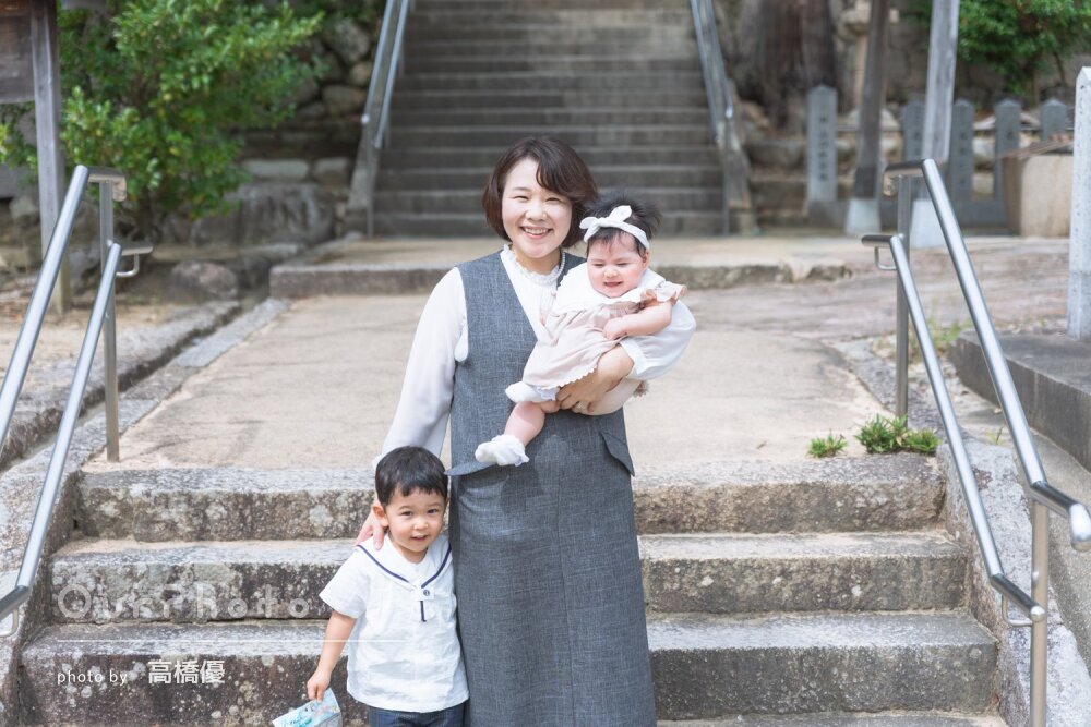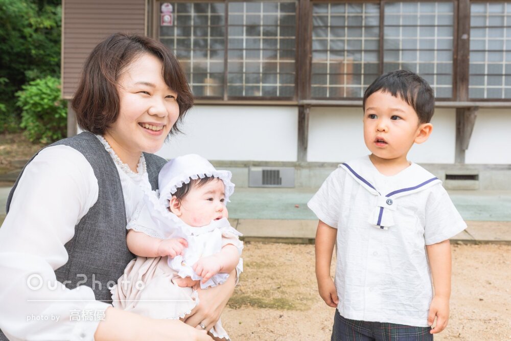 下の子のお宮参りで家族写真の撮影をお願いしました。とても気さくな方で、2歳の上の子も緊張せず、撮影後は「楽しかった!」と言っていました。