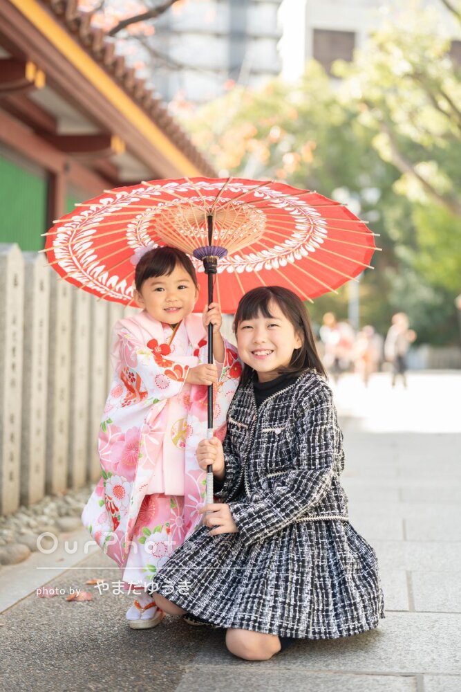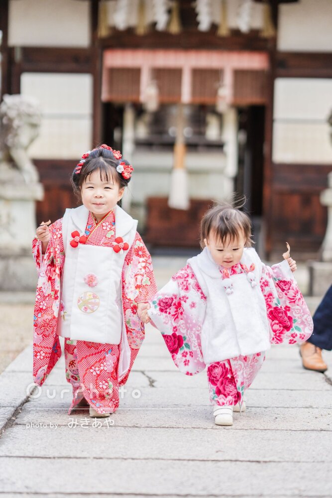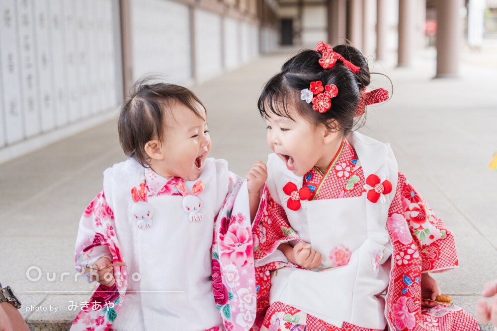 下の子はご機嫌ななめでしたが、さまざま工夫していただき、どうにか兄妹ショットも撮ってもらえました。