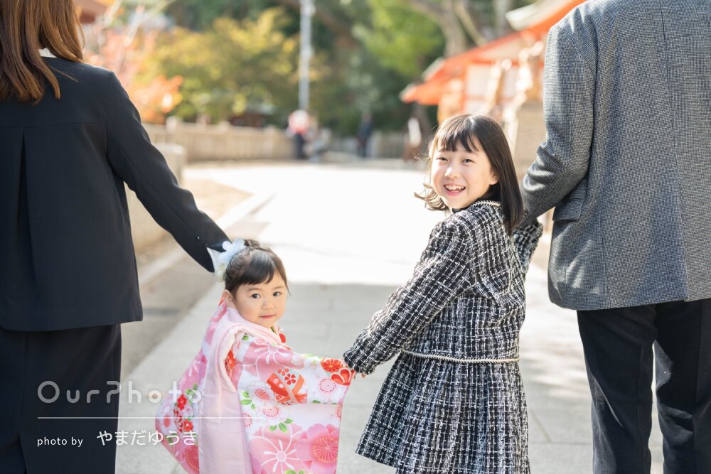 当日も七五三などでたくさんの人で溢れかえる神社の中、人混みを避けて神社一周しながら、