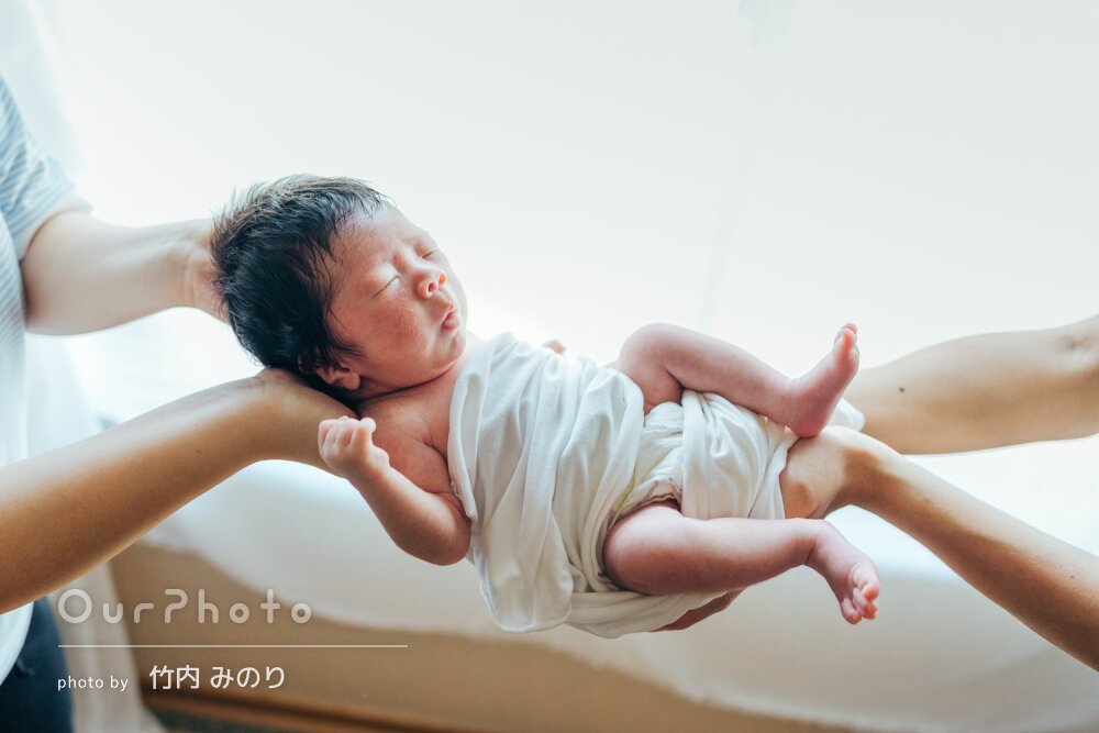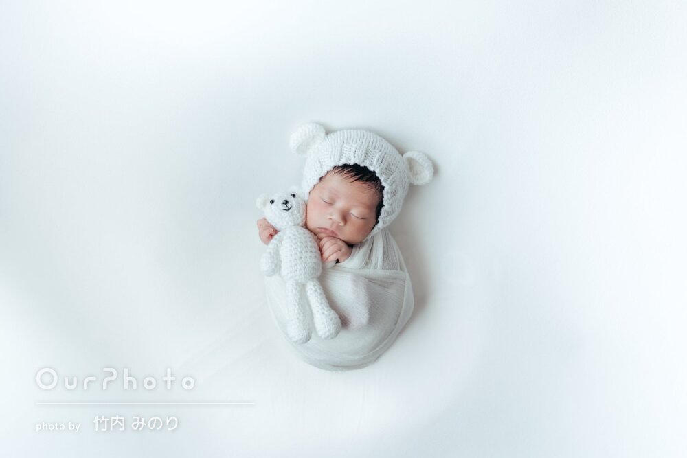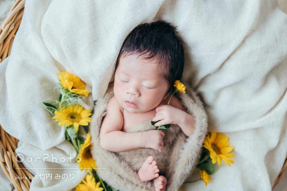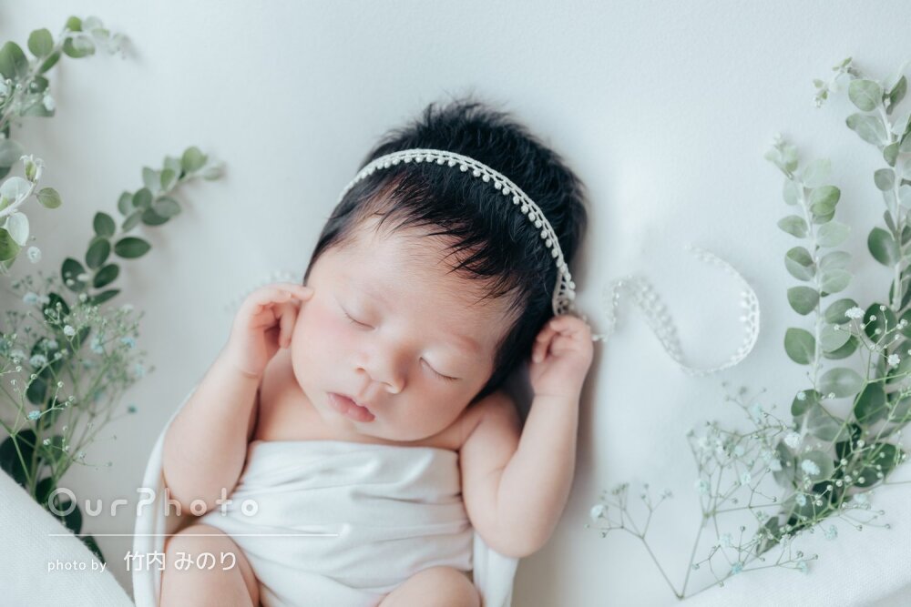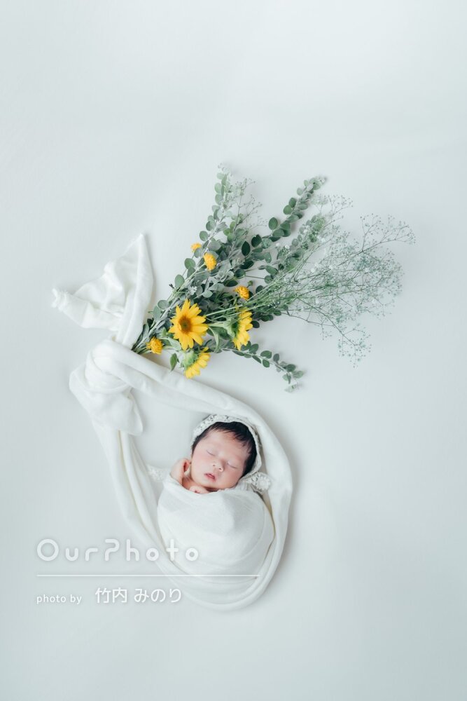 赤ちゃんに無理がないよう配慮していただきながらの撮影で、安心してお任せすることができました。撮影のおくるみや小道具も、素敵な組み合わせをご提案いただいたおかげで、理想の写真を撮ることができました。