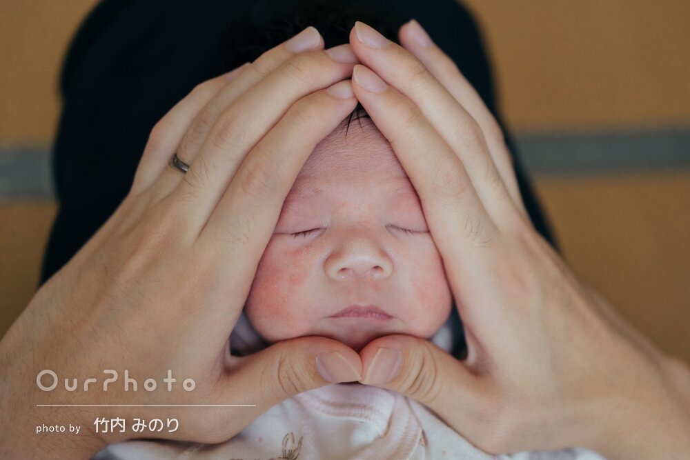 出来上がった写真を見て、想像を超える可愛さに家族みんなで感動しました。そしてとっても写真が綺麗です!寝ている写真ばかりなのに、生まれたばかりの我が子のちょっとした表情や、口角の上がり方、指先の動きなど、普段気づかなかった新しい一面を見ることができて、とても嬉しかったです。光の取り入れ方や、我が子の小さな手や足のシワまで本当に綺麗に写し出されていて、ニューボーンフォトを竹内さんにお願いして良かったと心から思いました。