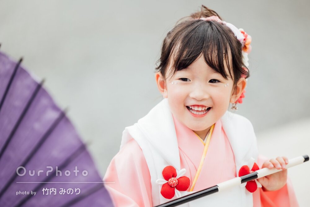 最初こそ娘も緊張していましたが、可愛いくまさんのお人形で和ませてもらうなど、終始細やかなご配慮をいただき、安心して撮影に臨むことができました。こちらが持参した小物についても、素敵なアイデアで撮影をご提案くださり、娘もとても楽しそうでした。