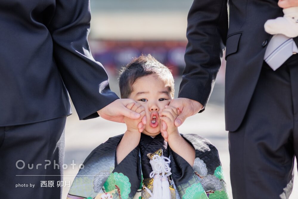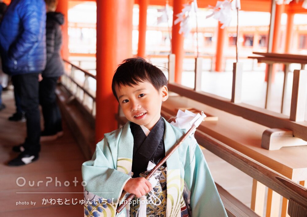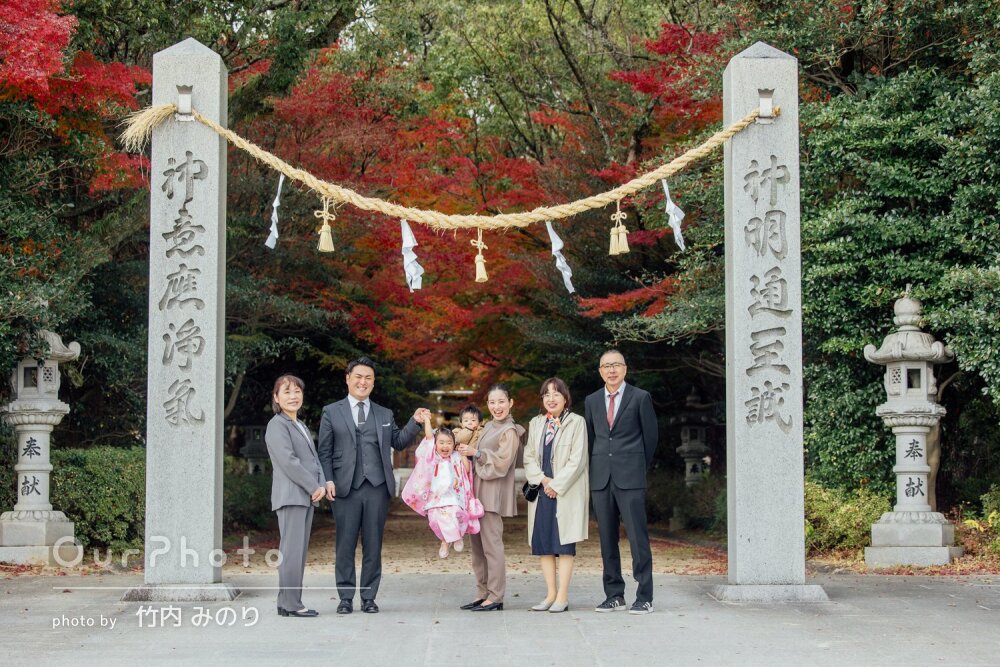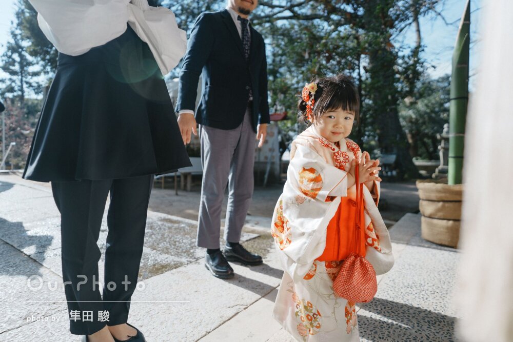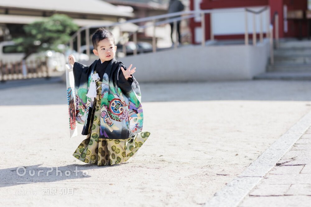 地元ではないので撮影するのにおすすめの神社を教えていただき、そこで撮っていただきました!撮影するのにとてもよいロケーションの神社で、ご祈祷は撮影の後に予定していたのですが先にご祈祷をさせてもらい、お参りしている様子なども撮っていただきました。