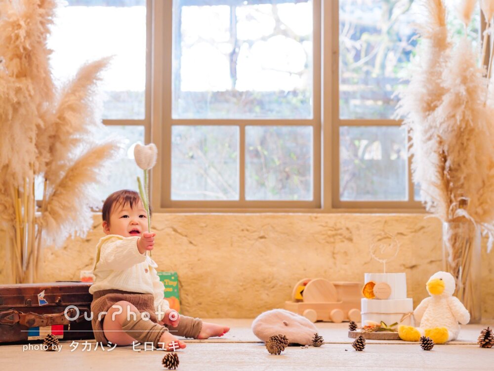息子の1歳の誕生日フォトで高橋さんに撮影をお願いしました。事前に撮影場所の情報も調べて、この画角で撮ったら綺麗に取れそう!というのまで考えてくださってて、さすがプロだな!と思いました。息子に対してもずっと楽しませながら撮影をしてくれたので、終始和やかな雰囲気での撮影となりました。仕上がりの写真も満足すぎるくらい素敵でした!