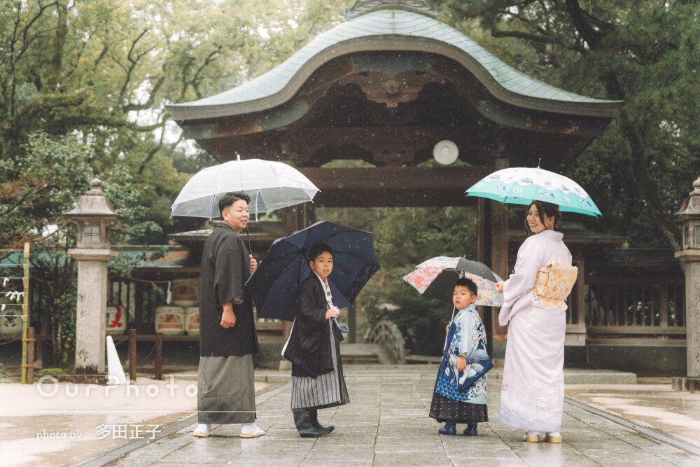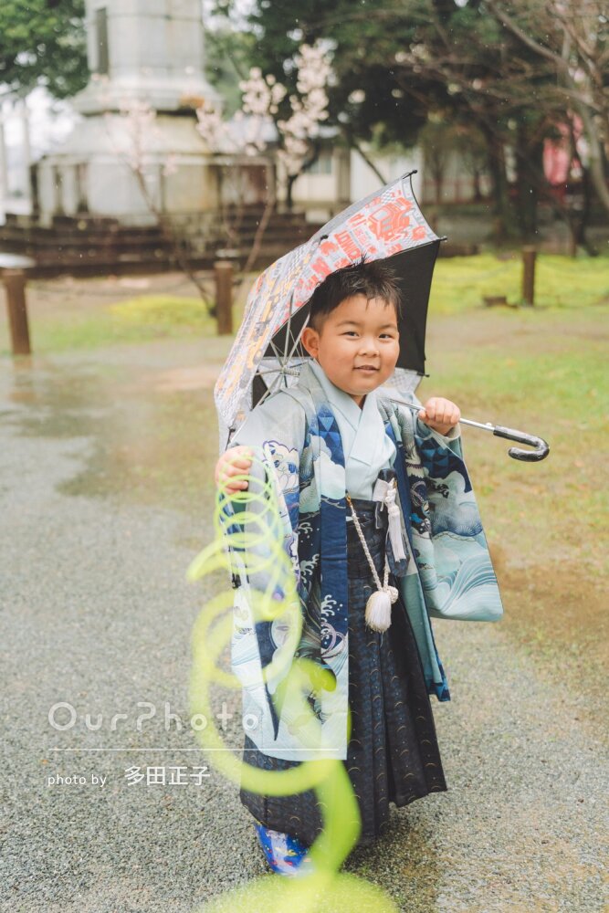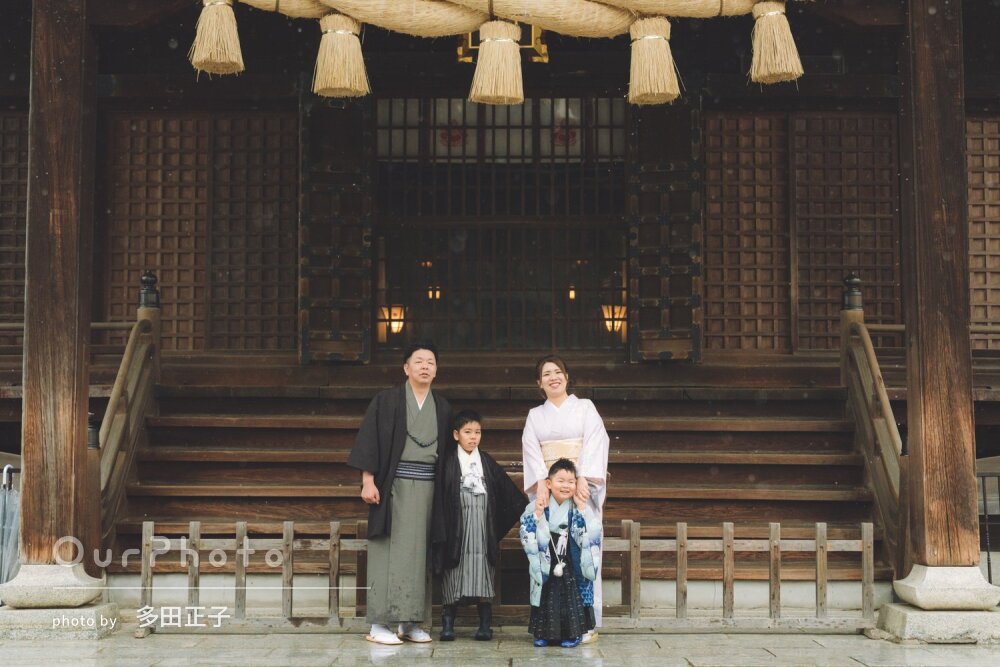 七五三の出張撮影をお願いしました!当日はあいにくの雨と寒さがありましたが、子供たちが退屈しないよう、笑顔を引き出すような質問をしながら撮影していただきました。雨の日の撮影も良かったと思えるくらい、素晴らしい写真と思い出になりました☆