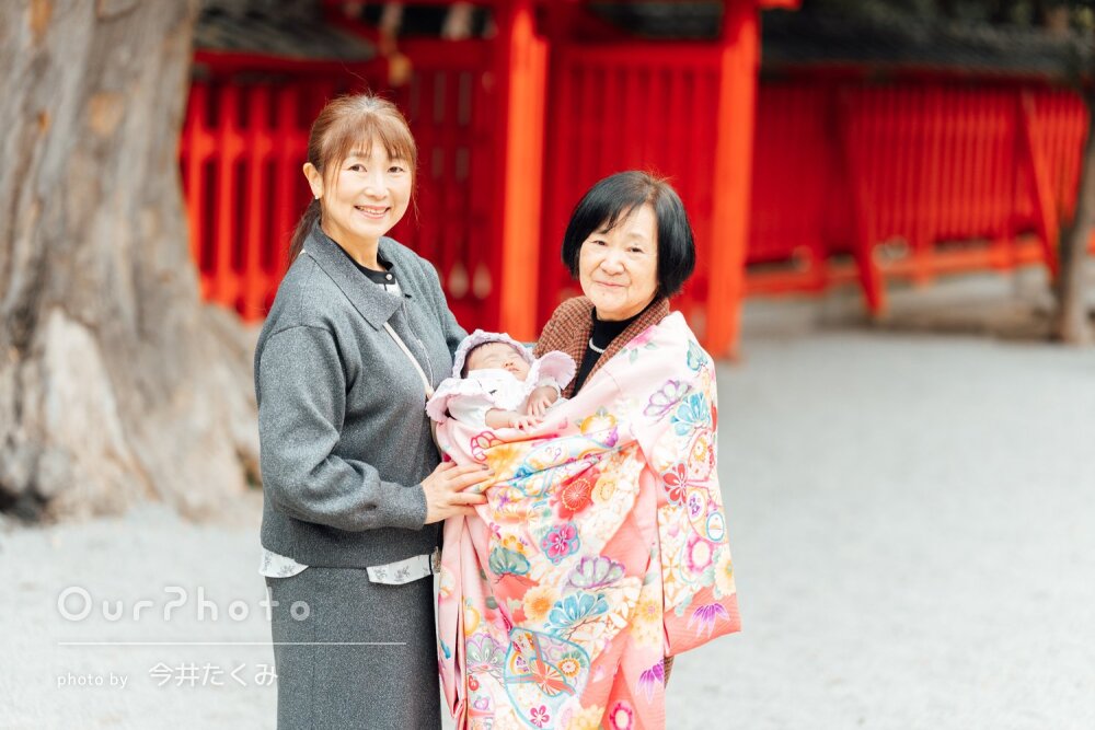 お宮参りの写真撮影を依頼しました。じっとしていることが難しい3歳児が一緒だったし、0歳の娘も途中グズってしまったので心配していましたが、子供たちの気を引こうとしてくださったり、貴重な笑顔の瞬間を逃さず撮影していただけたので嬉しかったです。写真もたくさん納品していただき、見返しながら楽しい時間だったなぁと感じています。またお願いする機会があったらぜひご依頼したいです。