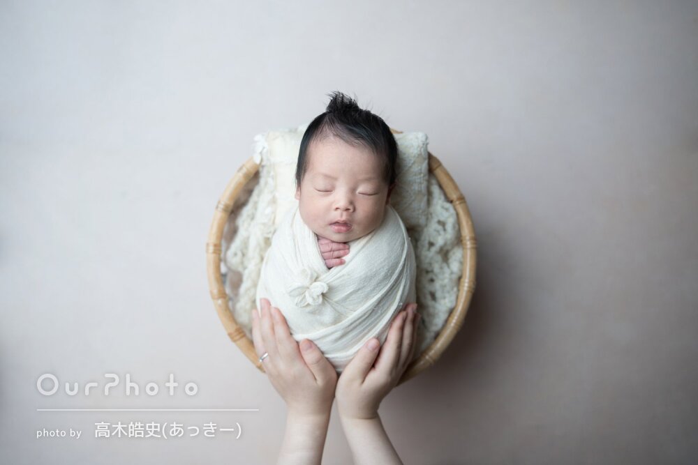 人生初のニューボーンフォトを撮っていただき、初めは泣かずに撮影ができるか不安でしたがあやしていただき終始落ち着いて撮影していただく事ができました!出来上がった写真も素晴らしく良い記念となりました。この度はありがとうございました!