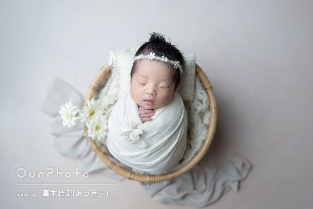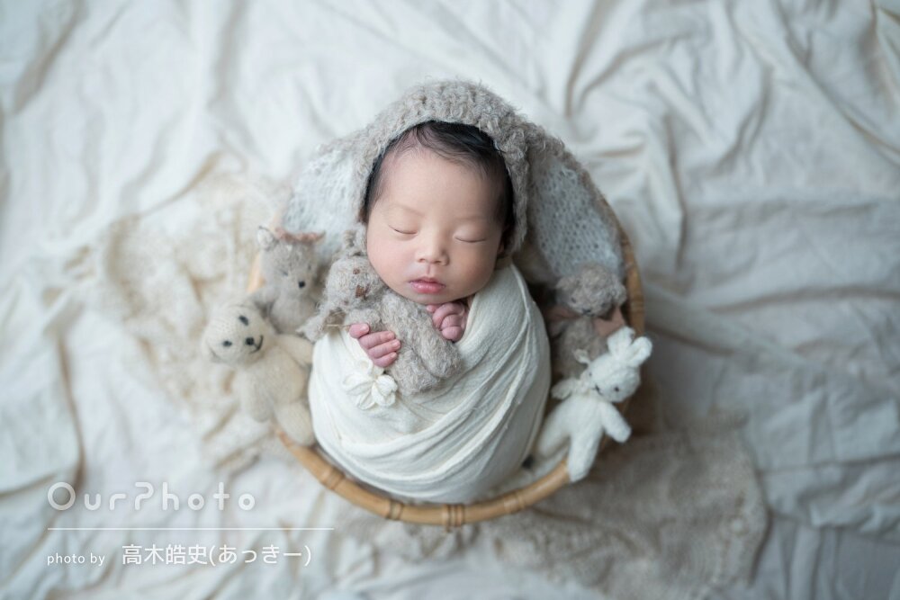 優しい声かけなど子供の扱いも丁寧で安心してお任せできました。おくるみや背景などの種類も多く幅広い選択肢があったことも良かったですし、出来上がりもとても綺麗で好みに合っており、とても満足できました。撮影中の動画も取らせて頂き、思い出に残りました。