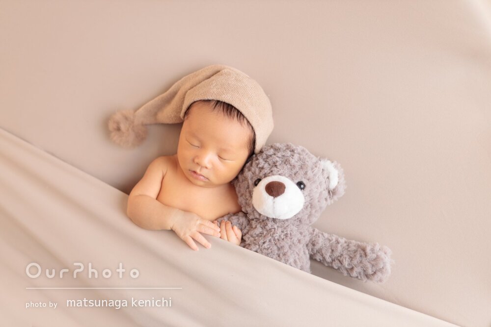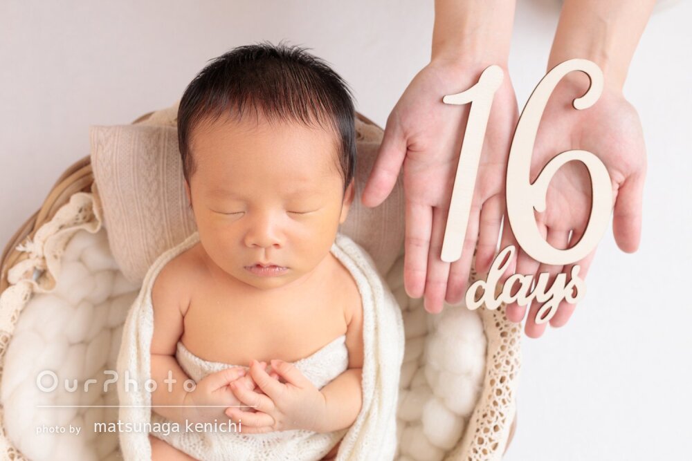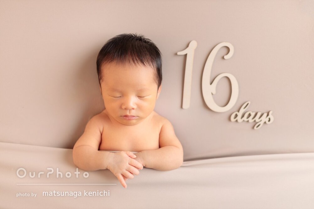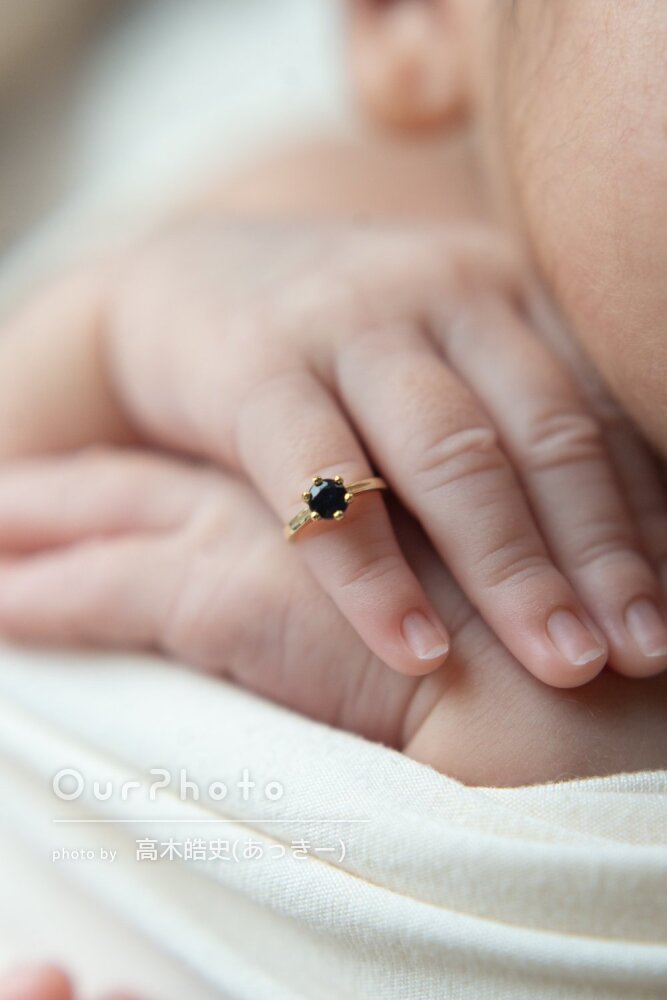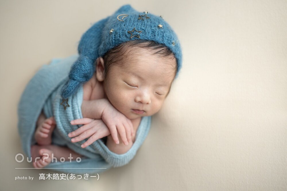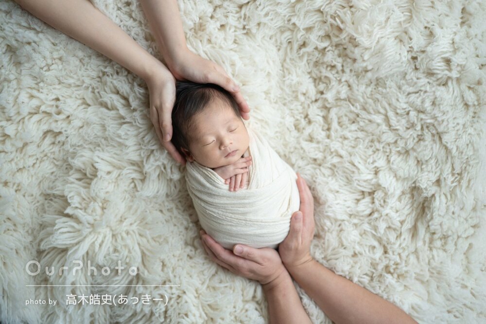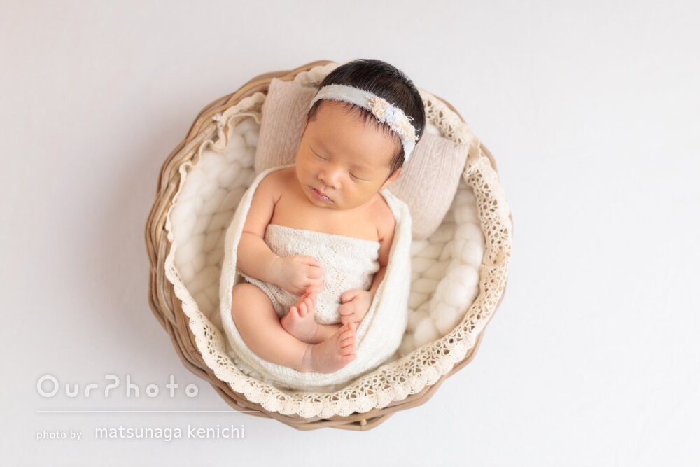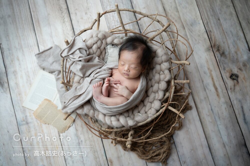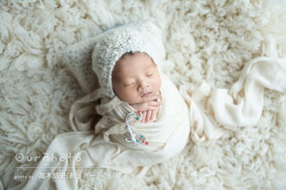 ニューボーンフォトを衣装や小物、ポーズ等全てお任せして撮影してもらいました。