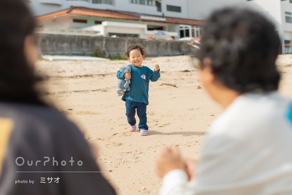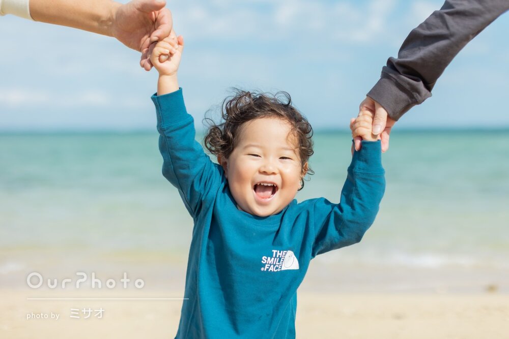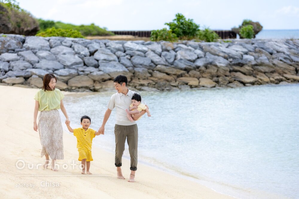 沖縄滞在の家族での思い出として大好きなアラハビーチで撮影していただきました。とても明るい方で、上手に子供の緊張をほぐしてくださり、リラックスして自然体の写真を撮ってくださりました。美しい撮影スポットやポージングも上手に教えてくださりまして、大変満足しています。