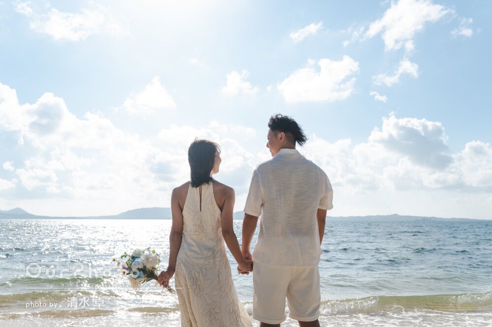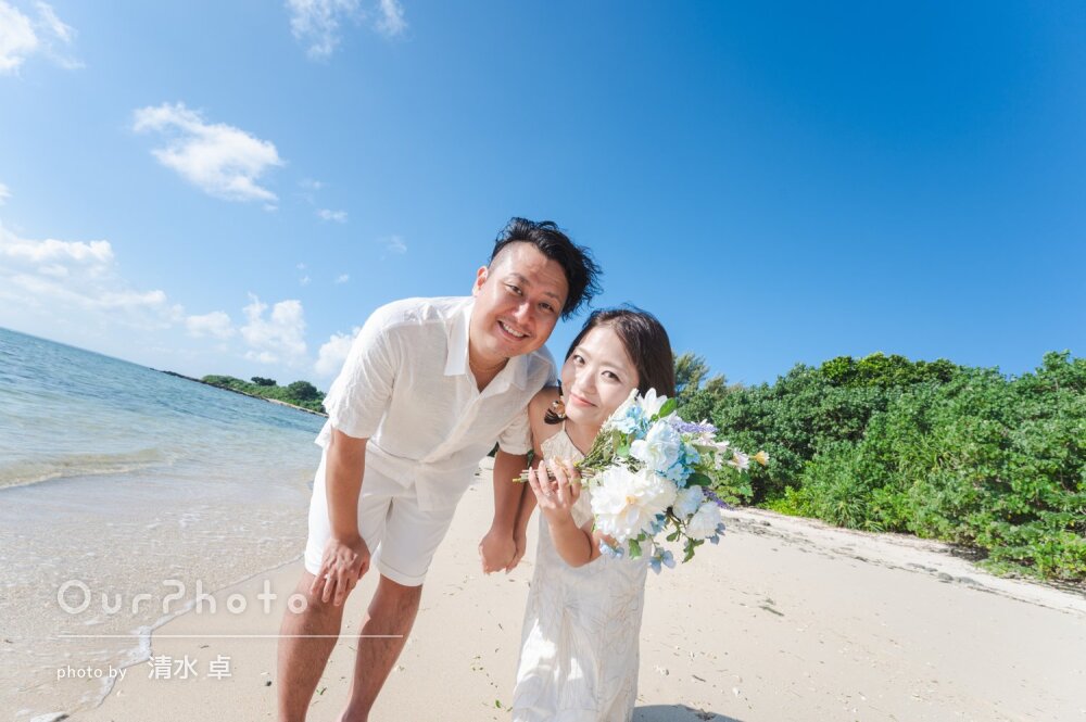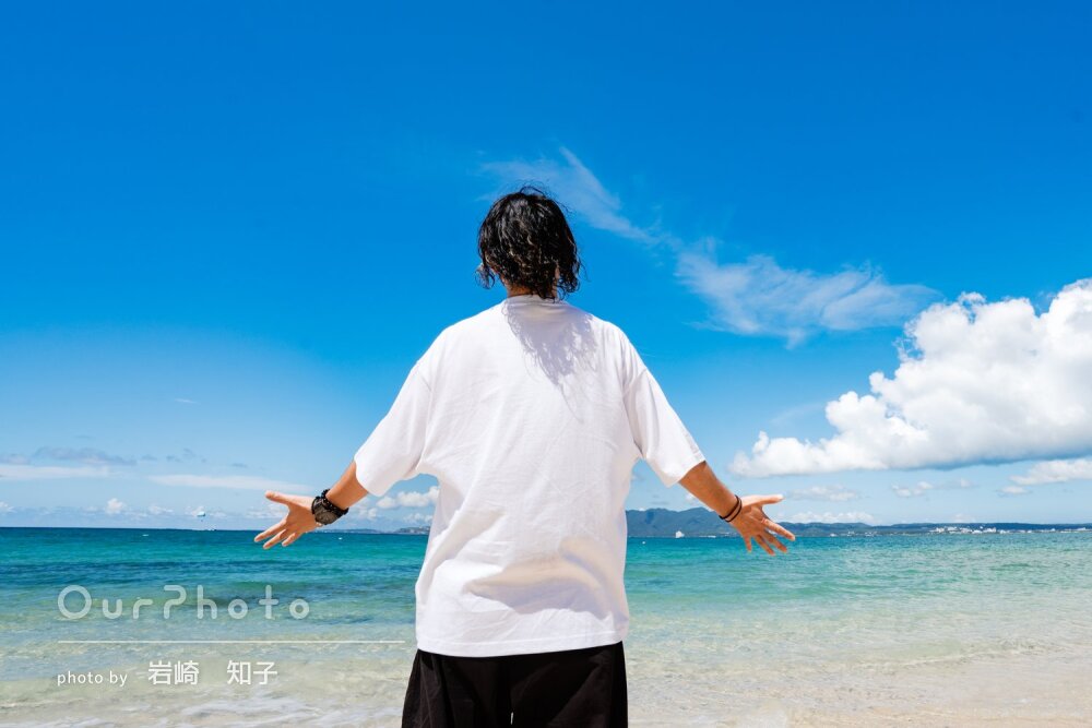 事前にお伝えした希望を快く聞いてくださり、沢山のアドバイスやご提案をして下さいました!当日の天気が心配でしたが、ものすごく爽やかな快晴で。そして岩崎さんの明るく元気なお人柄のおかげで楽しく撮影していただきました!暑い中一生懸命撮影して下さり、心より感謝いたします。仕上がった写真はどれも想定以上の出来栄えで、沖縄の青い海を活かした最高の作品となりました。特に色味と光の表現がかなりきれいです!お人柄、技術共に素晴らしい方なのでまた沖縄に行った際にはお願いしたいと思います。ありがとうございました!