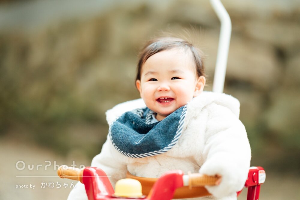 今回は誕生日の写真を撮っていただきました。公園で撮ってもらったので、途中から子どもが遊びたい!になってしまい、ほんとに申し訳なかったのですが、それにも付き合いながら撮影してくださり、ほんとにありがとうございました。