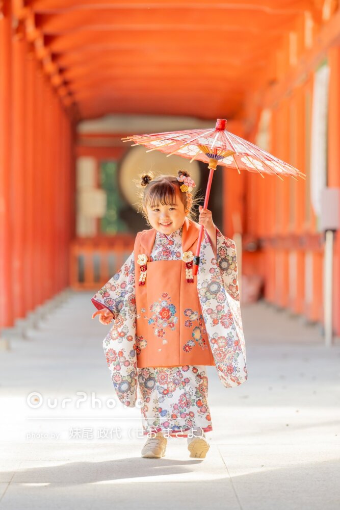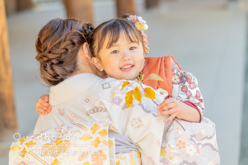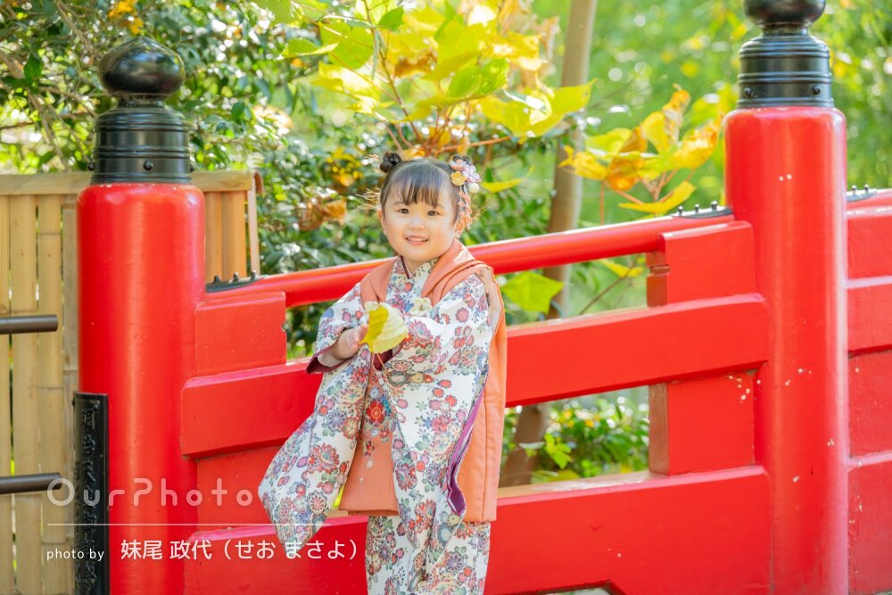 七五三シーズンの一番混雑している日にお願いしたせいもあり、混雑の中での撮影に双方で苦戦した時間もありましたが、届いた写真は色合いが美しく、さすがの仕上がりでした。