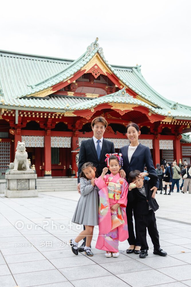 三歳娘の七五三でした。神社でのたくさんの写真を撮っていただき、納品も当日中で大満足です。姉妹の写真もたくさん撮っていただいて、祈祷の間待っていてもらったりとスケジュールに合わせて撮影していただき助かりました。娘とのツーショットは普段あまりなかったので新鮮で嬉しかったです。
