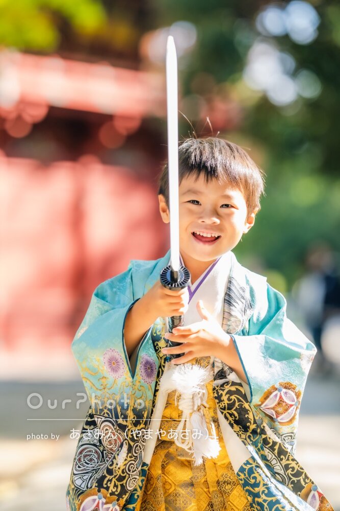 ご祈祷の太鼓の音を怖がり、予定時間の大半は泣いて泣いて手がつけられない状態でしたが、後半落ち着いてから少しずつポーズをとってくれるようになって、ご厚意で少し時間を延長して撮影いただきました。
