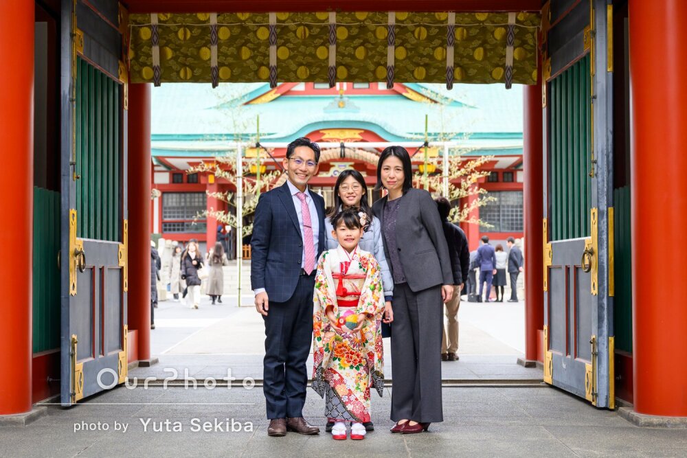 日枝神社での七五三撮影をお願いしました。上の子の時にお願いして大変良かったため、今回は妹尾さんの予約が取れる日に七五三のお参りを設定しました。慣れない着物に息子の機嫌はかなり悪かったのですが、そのような状況だったとは思えないほど素敵な写真をたくさん納品してくださり本当に感謝しています。子どもたちとの関わり方や、撮影スポットの提案など素晴らしくありがたかったです。また機会を作ってお願いしたいと思っています。