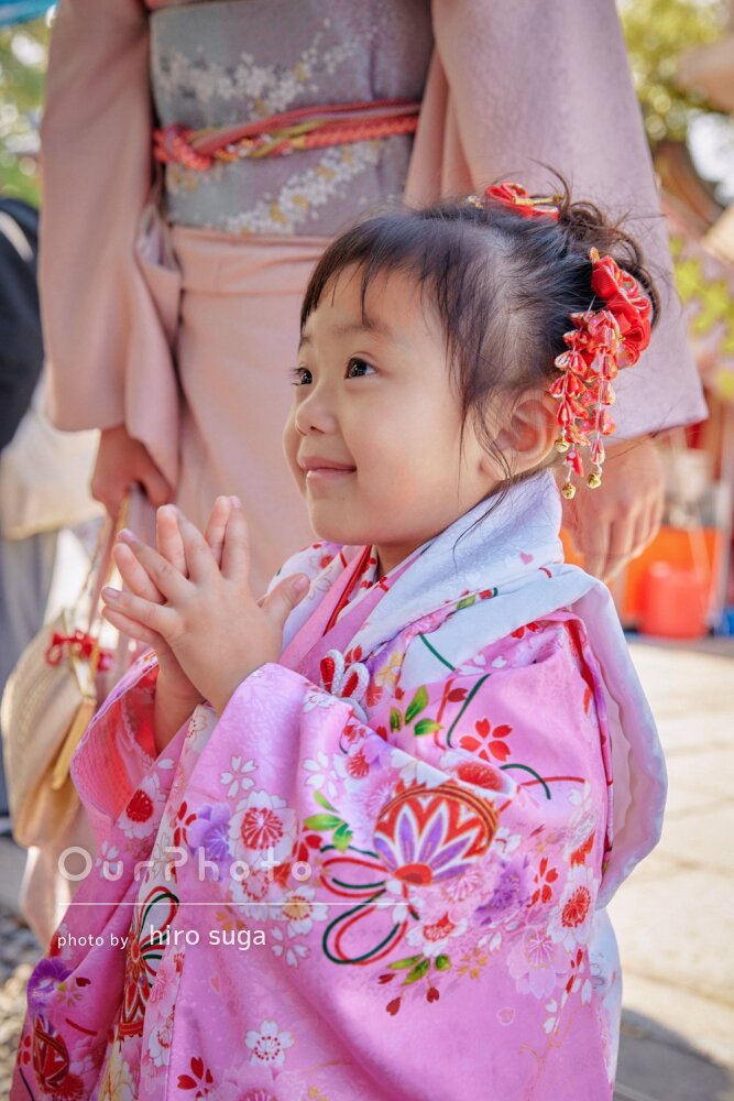七五三の写真をとても可愛く撮っていただきました。限られた時間の中で効率よく撮っていただきました。出来上がってきた写真を見て感じたのは背景がとても美しかったことです。娘の表情だけではなく写りこむ風景が鮮やかになるように気にしてくださったり、人が多かったにも関わらずあまり写りこまないように配慮して下さったからだと思います。またご祈祷中の写真は本人のアップだけだはなく全体の様子が分かるように撮っていただいたのも良かったです。