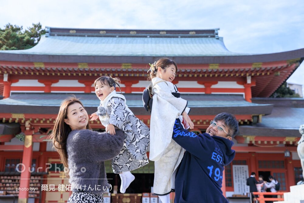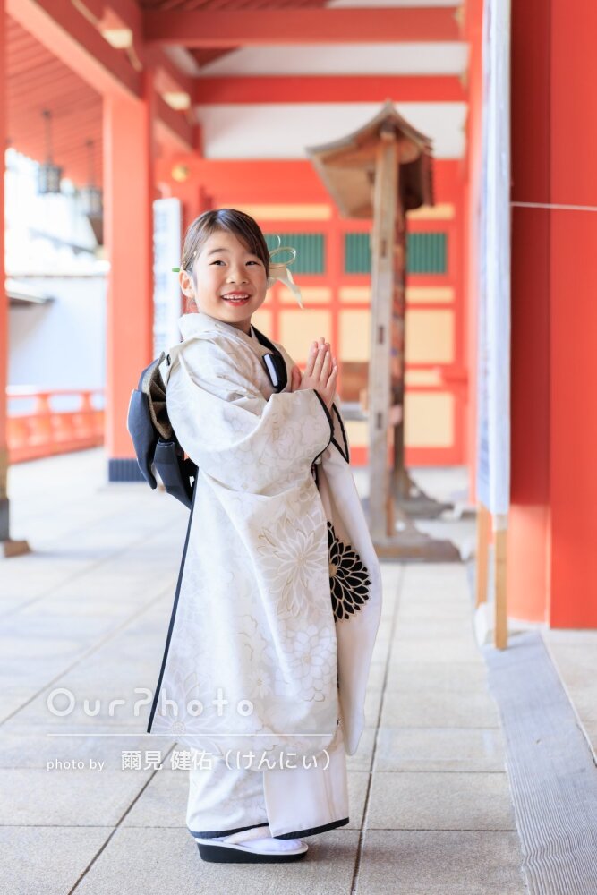 初めての七五三、初めての撮影で段取りも何もわかっていない状態でしたが、実績豊富なおかさんに身を委ねて撮影してもらいました。撮影しながら、こういう所で撮るのかと、なるほどと関心しながらあっという間に終わり、予定通りにご祈祷済ませることが出来ました。